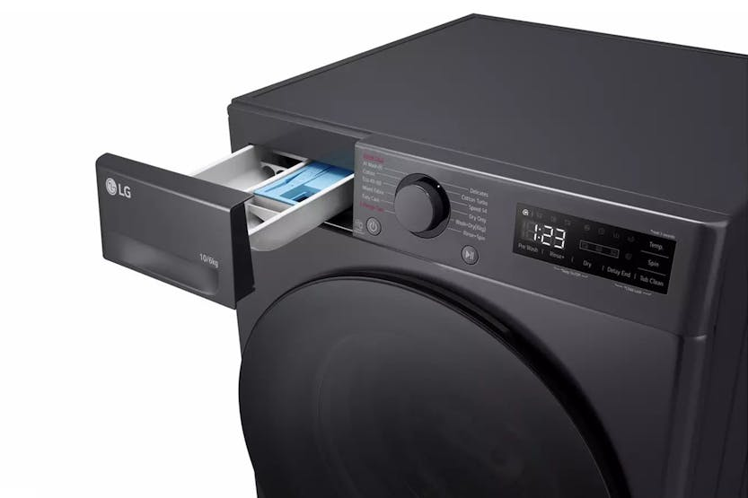 The LG Freestanding 10kg Washer/6kg Dryer | FWY606GBLN1 offers high energy efficiency with A-10% energy efficiency, helping you save costs and energy while providing an excellent wash. Its bigger capacity allows you to wash 2kg more clothes at once in the same size washer, thanks to the increased drum capacity. With features like Deep-Learning AI DD for optimal wash patterns, TurboWash for quick and thorough cleaning in just 39 minutes, and steam to reduce allergens, this washer/dryer combo ensures your clothes are clean, fresh, and cared for. In addition, the LG FWY606GBLN1 comes equipped with hygienic and durable lifters, a tempered glass door, and a more visible display for added convenience. With features like delay timer, vibration sensor, LoadSense, and Smart Diagnosis, this appliance offers a seamless laundry experience that is both efficient and effective.