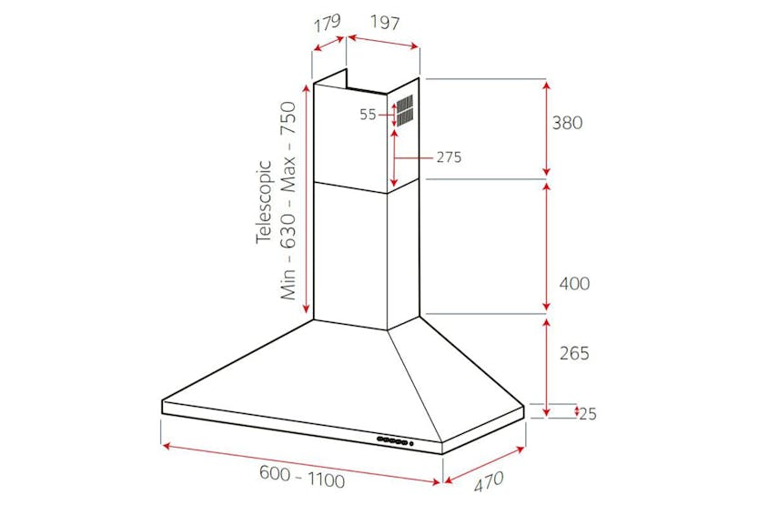 Upgrade your kitchen with the Luxair 60cm Premium Chimney Hood. Made with high-quality 18/10 grade stainless steel, this extractor features a 550m³/hr motor and 2x LED lights for efficient and stylish ventilation. Whether you choose to use charcoal carbon filters or duct it out, this hood ensures a fresh and odour-free kitchen environment. With noise levels as low as 49 DB and a sleek design, this extractor is a must-have for any modern kitchen.