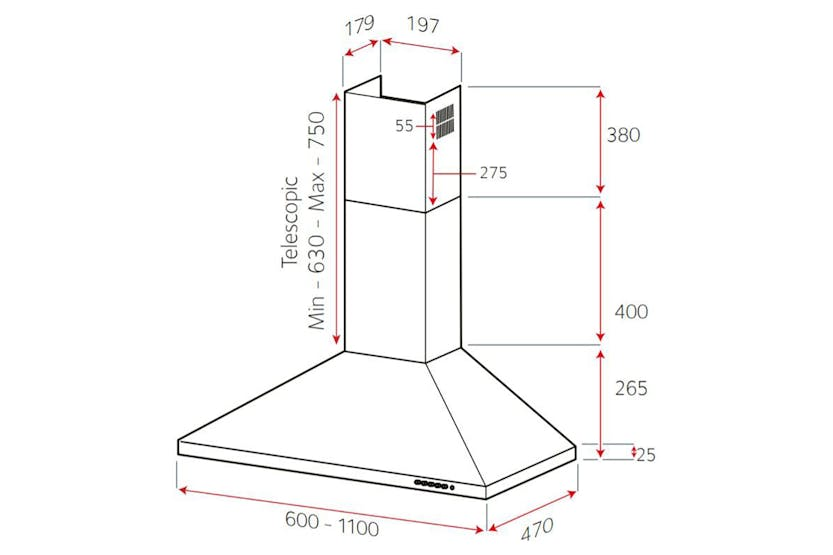 Upgrade your kitchen with the Luxair 90cm Premium Chimney Cooker Hood in sleek black. With a powerful 550m³/hr extraction rate and 3 fan speeds, this hood efficiently removes cooking odors and grease. The 2 LED bulbs provide ample lighting while the grease filter ensures easy maintenance. Enhance your cooking experience with this high-quality, stylish cooker hood from Luxair.
