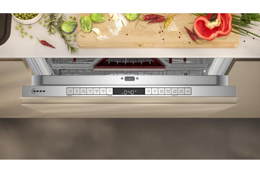 Upgrade your kitchen with the Neff N70 Fully Integrated Dishwasher 60cm (S187ZCX03G) featuring Flex 2 Baskets, Flex Cutlery Drawer, and 3-Stage Rack Matic for customizable storage and easy height adjustments. Benefit from Zeolith drying technology for perfectly dry dishes and TimeLight for cycle time projection. Enjoy Door Open Assist, Home Connect for remote control, and Chef 70°C program for tough cleaning challenges. With downloadable programs, AquaStop system, and remote diagnostics, this dishwasher offers efficiency and peace of mind. The Neff N70 Fully Integrated Dishwasher (S187ZCX03G) boasts a capacity of 14 place settings, 40 dB(A) noise level, and Class B energy efficiency. Choose from various programs like Auto 45-65°C, Glass 40°C, and IntensivePlus, along with additional options like Power Zone and VarioSpeed Plus. With Zeolith drying and EcoSilence Drive, this dishwasher combines performance and convenience in a sleek, modern design perfect for any kitchen.