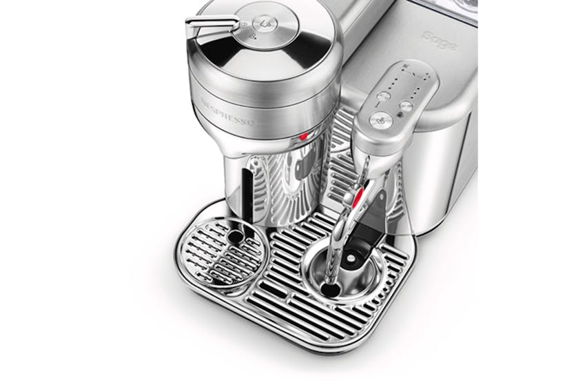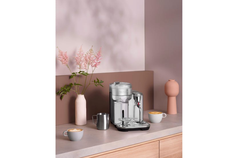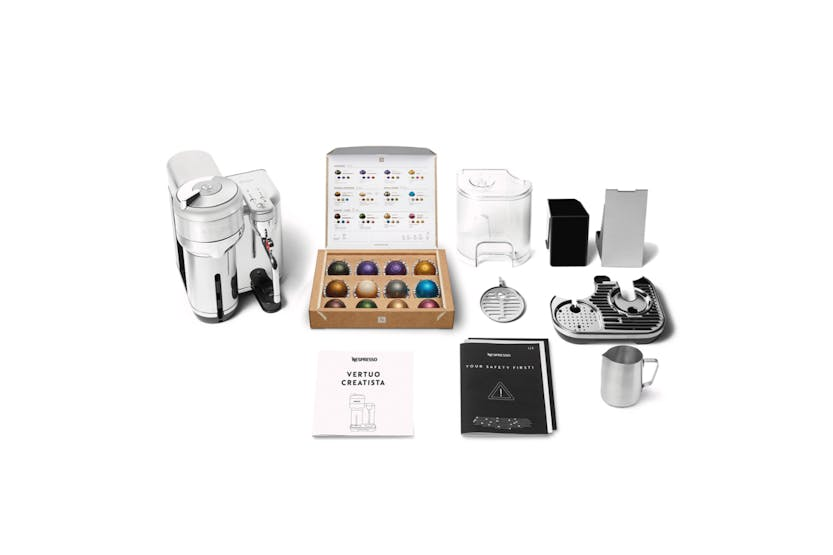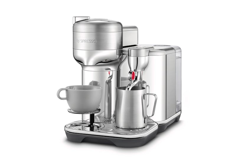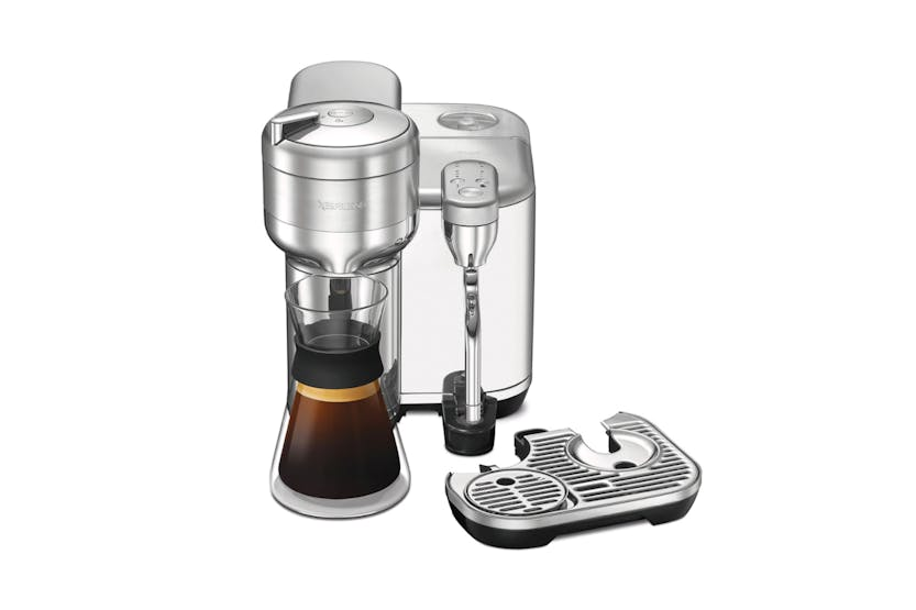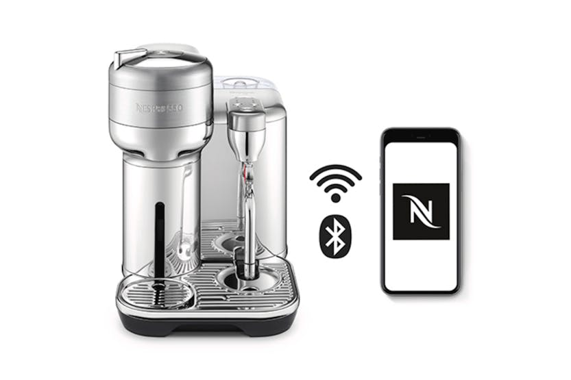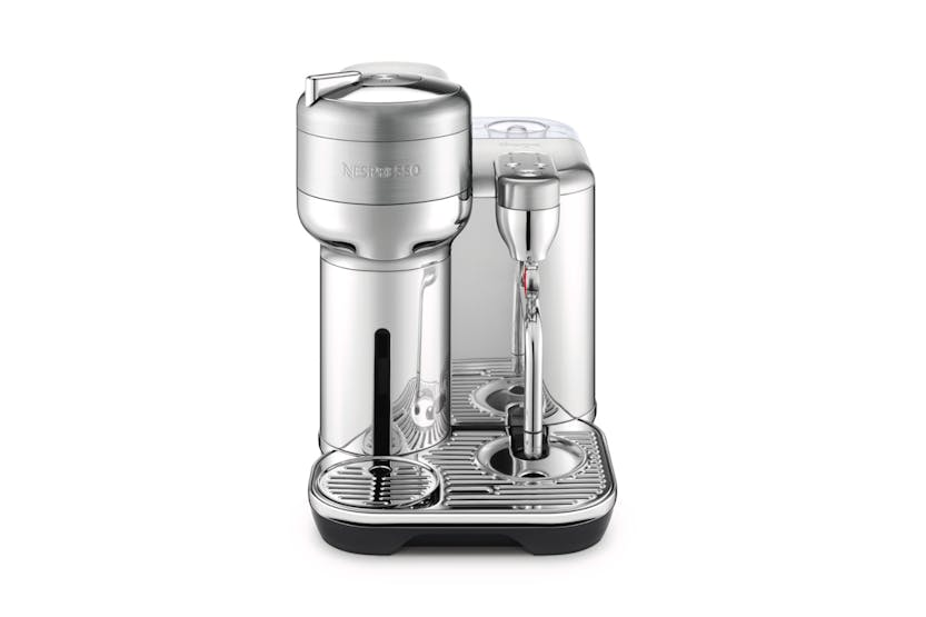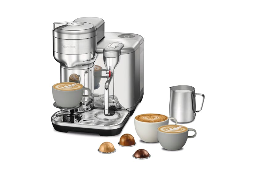 Elevate your at-home coffee experience with the Nespresso Vertuo Creatista by Sage. Craft your favorite milk-based recipes with ease, thanks to the integrated steam wand and automatic milk texturing feature. With intelligent brewing technology delivering 5 coffee sizes and premium stainless-steel construction, this machine ensures every cup is crafted to perfection. Plus, with machine connectivity via Bluetooth and WiFi, you can always enjoy the best coffee experience possible. Upgrade your morning routine with this versatile and stylish coffee maker. Experience café-quality coffee at home with the Nespresso Vertuo Creatista. This machine offers a wide range of coffee options, from Espresso to Carafe, and allows you to create your own milk recipes effortlessly. With 3 milk temperature settings and 3 milk texture levels, you can customize your drinks to suit your taste. The premium stainless-steel design adds a touch of elegance to any kitchen, while the included accessories like the stainless steel milk jug and steam wand cleaning tool make maintenance a breeze. Elevate your coffee game with the Vertuo Creatista.