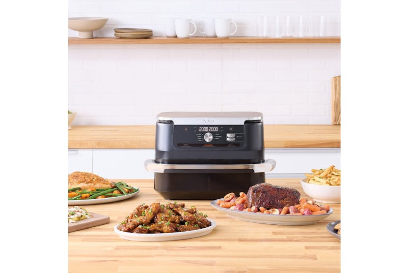The Ninja 10.4L Foodi Dual Zone Air Fryer in sleek black allows you to cook up to 45% faster than an oven, making it perfect for feeding a crowd. With Dual Zone Technology, you can cook in 2 independent zones, allowing you to mix and match cooking programs, times, and temperatures to create delicious meals for 8+ people. The air fryer also offers 7 cooking functions, including Air Fry, Roast, Bake, and Dehydrate, giving you versatile options to create a variety of dishes. Plus, the non-stick, dishwasher-safe design makes cleaning up a breeze. Enjoy healthier, faster, and more efficient cooking with the Ninja 10.4L Foodi Dual Zone Air Fryer. The Ninja 10.4L Foodi Dual Zone Air Fryer in black offers an extra-large 10.4L MegaZone, perfect for fitting larger foods like a 2kg leg of lamb or traybake meals. With the ability to cook 2 different foods at the same time using Dual Zone Technology, you can easily cater to different dietary requirements or tastes. The air fryer cooks up to 65% faster than fan ovens, making it quick and easy to create family-size meals. Additionally, the air fry