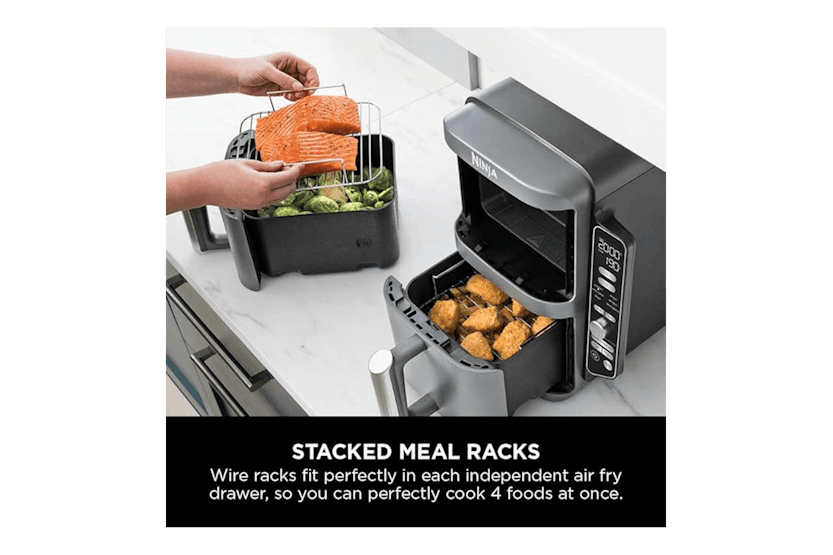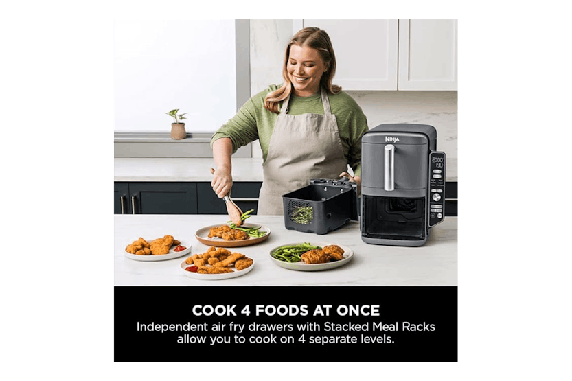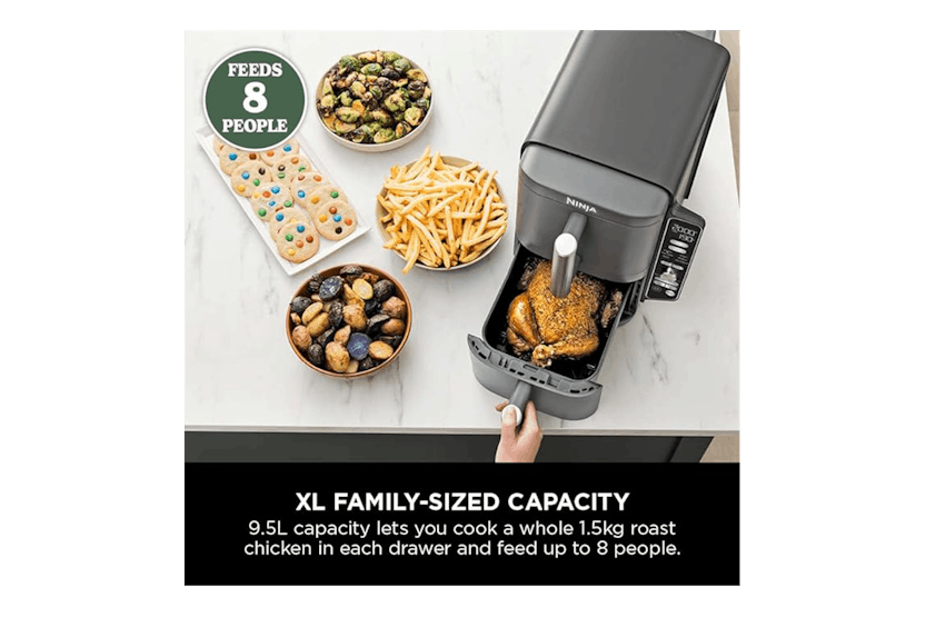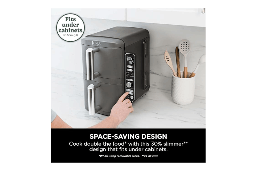 The Ninja 9.5L Double Stacked Air Fryer | SL400UK is the perfect solution for those looking to save space in their kitchen without compromising on capacity. With the ability to cook on 4 levels at once and 6 different cooking functions, this air fryer is ideal for large families, entertaining, and anyone looking to cook up fast family favorites up to 55% faster than traditional ovens. Featuring a space-saving design, energy-efficient cooking, and easy-to-use controls, the Ninja Double Stacked Air Fryer offers convenience and versatility for all your cooking needs. With the ability to cook a variety of foods at once and fit under cabinets, this air fryer is a must-have for those looking to streamline their cooking process and enjoy delicious meals in minutes.
