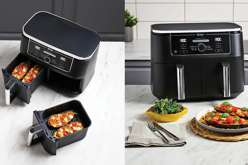 Upgrade your cooking game with the Ninja 9.5L Foodi MAX Dual Zone Air Fryer. With 2 independent cooking zones, you can cook 2 different foods at the same time, saving you time and effort. Enjoy up to 75% faster cooking than fan ovens and up to 75% less fat with the versatile cooking functions including Max Crisp, Roast, Bake, Reheat, Dehydrate, and Air Fry. Whether you're feeding a large family or just cooking for yourself, this air fryer has you covered with its extra-large capacity and customizable cooking options. Say goodbye to boring meals and hello to delicious, healthier cooking with the Ninja Foodi MAX Dual Zone Air Fryer. Bring convenience and versatility to your kitchen with the Ninja 9.5L Foodi MAX Dual Zone Air Fryer. With 2 independent cooking zones, you can cook different foods simultaneously with different programs and times, all ready to serve at the same time. Enjoy up to 25% more cooking capacity compared to previous models, making it perfect for families and gatherings. With 6 customizable cooking functions including Air Fry, Max Crisp, Roast, Bake, Reheat, and Dehydrate, you can cook a wide variety of dishes from crispy fries to succulent ro