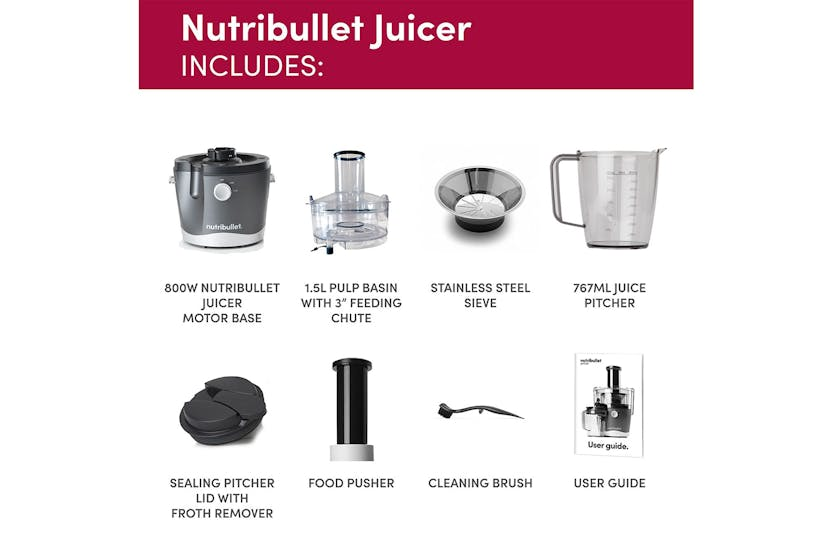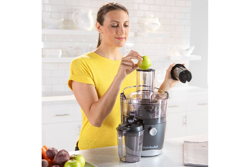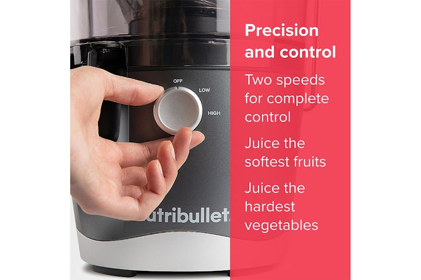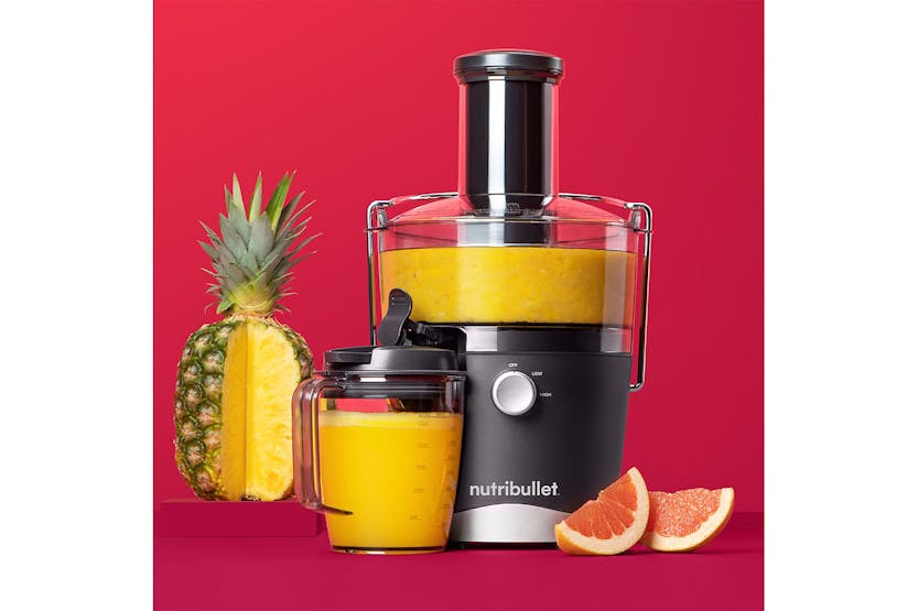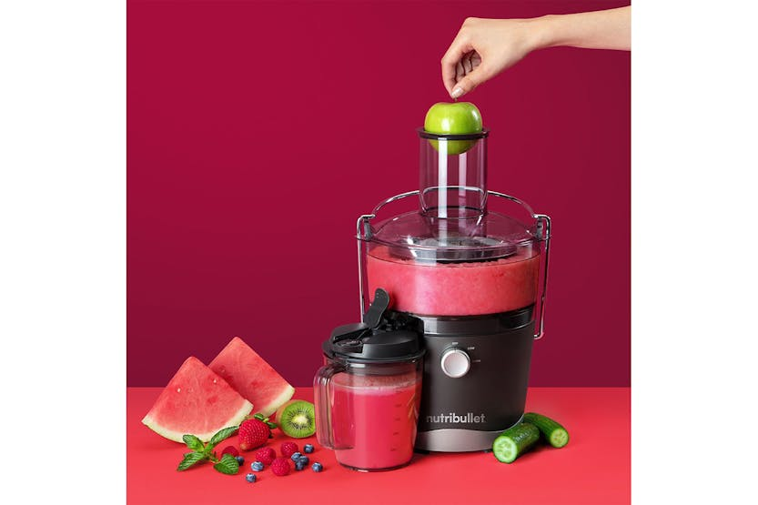The Nutribullet 800W Juicer is a compact and efficient juicer designed for everyday use. With a wide 3” feed chute that eliminates the need for prep work, two speeds for precise juicing control, and a sealing juice pitcher for easy storage, this juicer makes it simple to enjoy fresh, homemade juice with minimal effort. Cleanup is a breeze with dishwasher-safe parts, making this juicer a convenient addition to any kitchen. Say goodbye to complicated juicing and hello to quick, delicious results with the Nutribullet 800W Juicer.