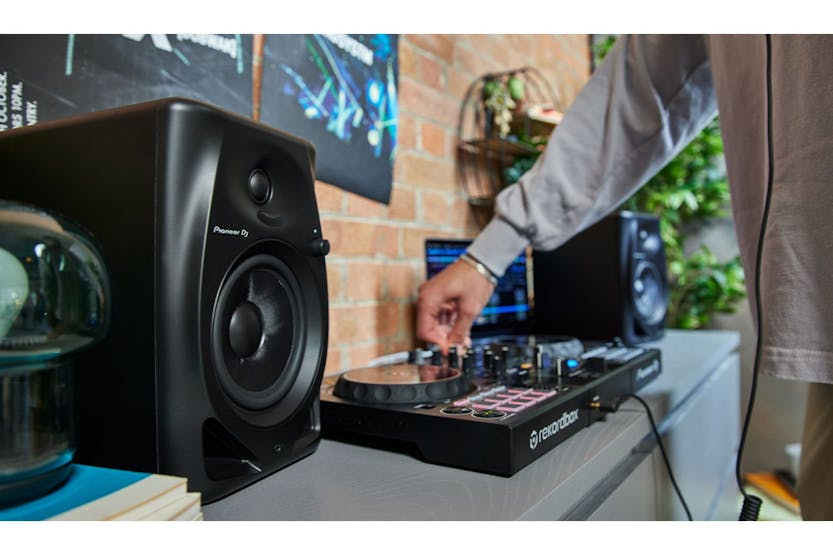 Enhance your DJing or music production experience with the Pioneer DJ DM-40D 4" Desktop Active Monitor Speaker in sleek black. Featuring a Class D amplifier, 4-inch woofer, and DECO convex diffusers, these speakers deliver crystal-clear sound with balanced bass and wide sweet spot. Switch between DJ mode and Production mode for optimized sound settings, while the grooved ducts and time alignment ensure clear audio at any volume level. Connect easily to different equipment with RCA and mini jack terminals, and enjoy the convenience of included accessories like a power cord and audio converter cable. Upgrade your studio setup with the Pioneer DJ DM-40D 4" Desktop Active Monitor Speaker in black. These 2-way bass reflex speakers offer powerful sound with a 3/4" soft dome tweeter and 4-inch fiberglass woofer. Whether you're DJing or producing music, the optimized DSP settings in DJ mode and Production mode provide the perfect sound for your needs. With easy connectivity options and included accessories like a speaker cord and bottom cushion, these speakers are a must-have for any music enthusiast.