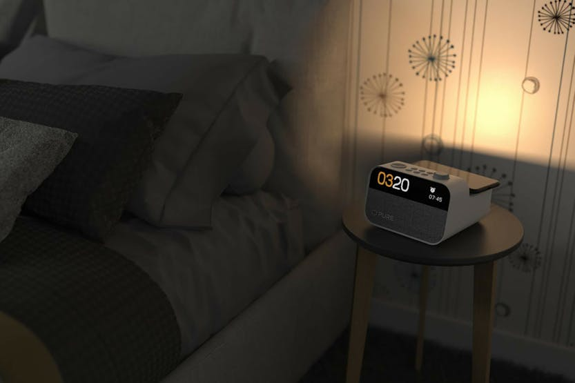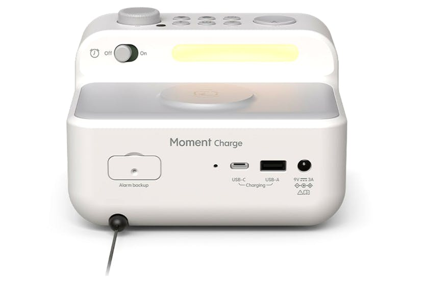 Description Moment as White Noise Device: Sleep Soundly with Natural Sounds Experience the calming effects of Moment’s 20+ themed natural sounds, perfect for lulling you to sleep when your mind is racing. From white noise to ambient nature sounds, Moment creates a serene environment for restful nights. Setting Your Alarm, Just Takes One Moment: Wake Up Refreshed With 10 customizable alarms and endless combination possibilities, Moment lets you preview and set your wake-up routines effortlessly. The fully dimmable display ensures a deep sleep, while various backup alarms, powered by an emergency battery, guarantee you wake up on time. And if in doubt, your next alarm is always displayed, so there's no need to navigate through the menu. Moment Is a Dimmable Night Lamp, Too: Create the Perfect Ambiance Moment’s dimmable and programmable night lamp offers gentle support light at night, enhancing your sleep experience. Adjust the brightness to your preference and enjoy a soothing wake-up with the sunrise function, which gradually increases light intensity. Check out the video: Moment, Your Premium Branded Radio: The Pure Radio Experience Start your day with Moment's digital DAB+ or FM radio, delivering a crystal-clear connection. Whether you're tuning in for the latest news or your favorite music, it's radio feature keeps you informed and entertained. Check out the video: Use Moment as a Bluetooth Speaker: Dynamic Audio Enjoyment Enjoy best-in-class audio quality with Moment’s warm sounding 5W Bluetooth speaker. Stream your favorite playlists wirelessly and immerse yourself in surprisingly powerful audio, perfect for any time of the day. Exceptional Sound Quality Experience crystal-clear audio from a punchy speaker with seamless Bluetooth 5.3 connectivity, DAB+, and FM radio options. Adjustable Light Features Fully dimmable night light and programmable sunrise function for customizable bedroom lighting. Dimmable Clock Display Minimize light disruption with a fully dimmable monochrome LCD clock display (192x32), promoting better sleep hygiene. Wireless Charging Power up your smartphone and put your cables to bed with our advanced wireless charging pad for effortless, tangle-free operation. Enhanced Sleep Hygiene Choose from 20+ soothing natural sounds, including white noise, to create a tranquil sleep environment. Your Audio Companion for Mindful Moments Enhance your bedroom quality time with Moment Charge, an audio device designed for modern lifestyles. Combining modern technology aspects and thoughtful design, it addresses every bedroom need, from falling asleep to waking up refreshed. Room-Filling Sound Moment Charge’s 10W speaker ensures room-filling, warm sound and high clarity even at low volumes, which makes it ideal for both night and daytime use. Enjoy crystal-clear audio via Bluetooth 5.3 and DAB+/FM radio. Dimmable Clock Display The fully dimmable monochrome LCD (192x32) clock display minimizes light disruption, promoting better sleep hygiene. The display can be completely turned off for a distraction-free environment. Great Product Design Available in White and Brown/Black, Moment Charge’s sleek design complements any decor. Its optimized format and intuitive controls make it a stylish and functional bedside addition or desktop companion. Power Supply + Battery Moment Charge is powered by mains (power cable length 1.4 m) and features a non-rechargeable emergency lithium battery (5g). Input connectors USB-C for software updates & charging. What's in the Box: Power cable (mains) Product Features: Radio frequency (FM)87.5-108MHz Radio frequency (DAB/DAB+)174-240MHz Automatic station search Inputs: Micro-USB (service only) Outputs: USB-A (Charging only), USB-C (Charging only), Wireless charging Speakers: 2x 2" full range driver Alarms: 4 Alarm types: Ringtone, Radio Controls: On Device Display size: 4.7" Read More