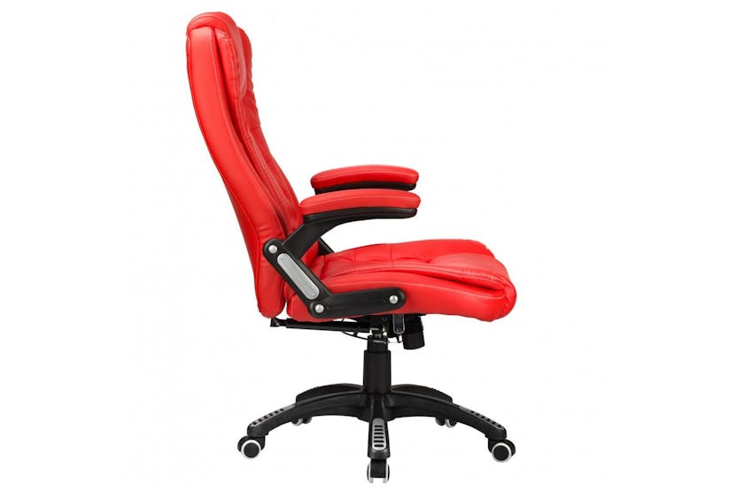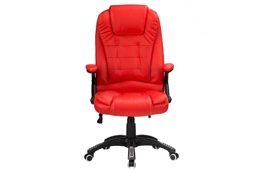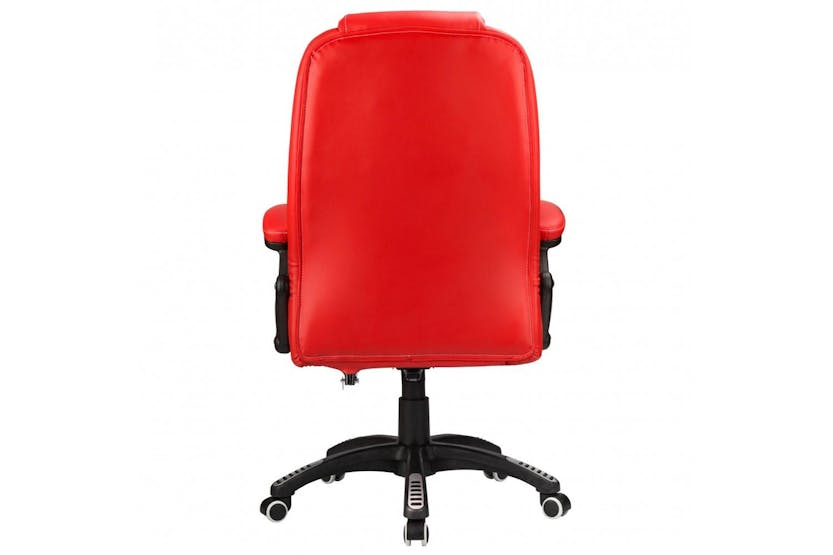 Enhance your workspace with the Raygar 360° Swivel Office Chair in elegant red faux leather. This high back reclining chair offers a luxurious and ergonomic seating experience, complete with adjustable height, recline functions, and a 360-degree swivel mechanism for maximum comfort and productivity. With its sturdy construction and plush padding, this chair is the perfect blend of style and functionality, making it a must-have for any professional setting. Elevate your workday with the Raygar office chair and experience the ultimate in comfort and sophistication. Free delivery available for online orders.