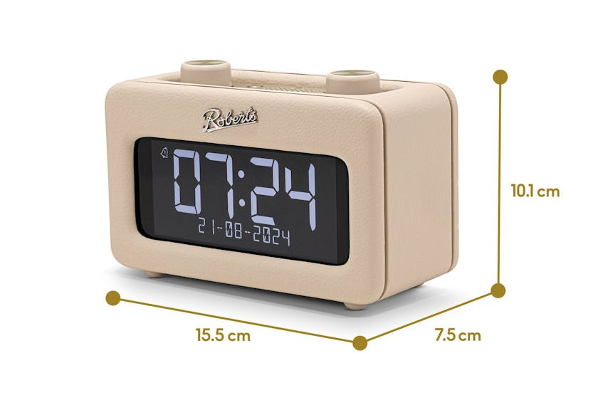 Description Online Only FMDAB Revival Large Display Clock Radio | Radio | Leathercloth | Large Start your mornings on the right note with the FMDAB Revival Large Display Clock Radio from ROBERTS, a perfect blend of classic charm and cutting-edge technology. Designed for those who appreciate both style and substance, this radio is a standout addition to any Irish home, offering a retro-inspired look with all the modern features you need for a seamless wake-up routine. With its large, easy-to-read LCD display and adjustable dimmer, the FMDAB Revival ensures you can always check the time at a glance, day or night. The dual alarm function is ideal for busy households or couples with different schedules, letting you set two separate alarms for ultimate convenience. Whether you prefer waking up to your favourite DAB+ or FM radio station, or streaming playlists via Bluetooth, this clock radio delivers crisp, clear audio every time. Crafted with a luxurious leathercloth finish and a handmade wood cabinet, the FMDAB Revival is more than just a practical bedside companionāit is a statement piece that adds a touch of elegance to your bedroom dĆ©cor. The tactile controls and retro design evoke a sense of nostalgia, while the advanced features ensure you stay connected to the music and news you love. Perfect for Irish consumers who value both aesthetics and performance, this clock radio is designed to fit seamlessly into your lifestyle. Whether you are looking for a reliable alarm clock, a stylish radio, or a versatile Bluetooth speaker, the FMDAB Revival delivers on all fronts. Upgrade your mornings and add a touch of timeless elegance to your bedroom with the FMDAB Revival Large Display Clock Radio by ROBERTSāwhere classic design meets modern convenience, tailored for Irish homes. What's in the Box Power adapter Product Features Large, clear LCD display with adjustable dimmer for easy viewing Dual alarms for flexible wake-up options DAB+ and FM radio for a wide range of stations Bluetooth streaming for wireless audio from your devices Luxurious leathercloth wrap and handmade wood cabinet for premium style Retro-inspired design with modern functionality Radio Type: DAB+, FM Display: Large LCD with dimmer Alarms: Dual alarm settings Connectivity: Bluetooth streaming Material: Leathercloth finish, handmade wood cabinet