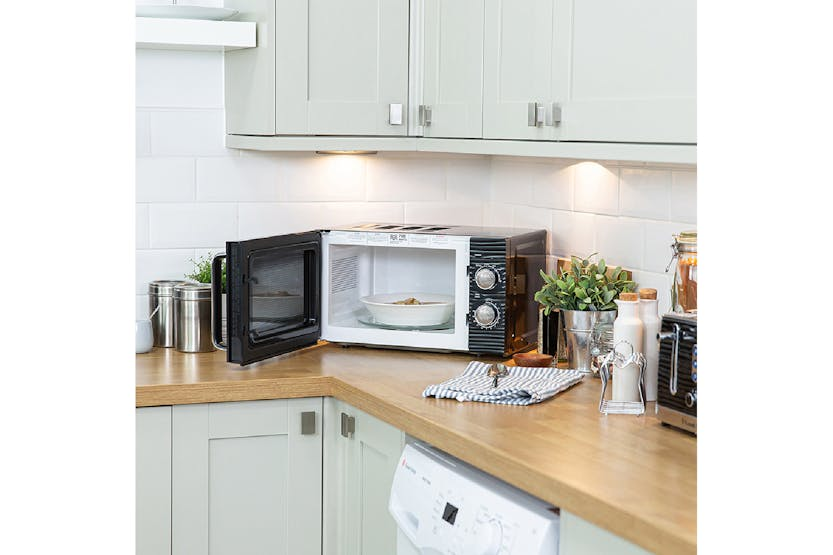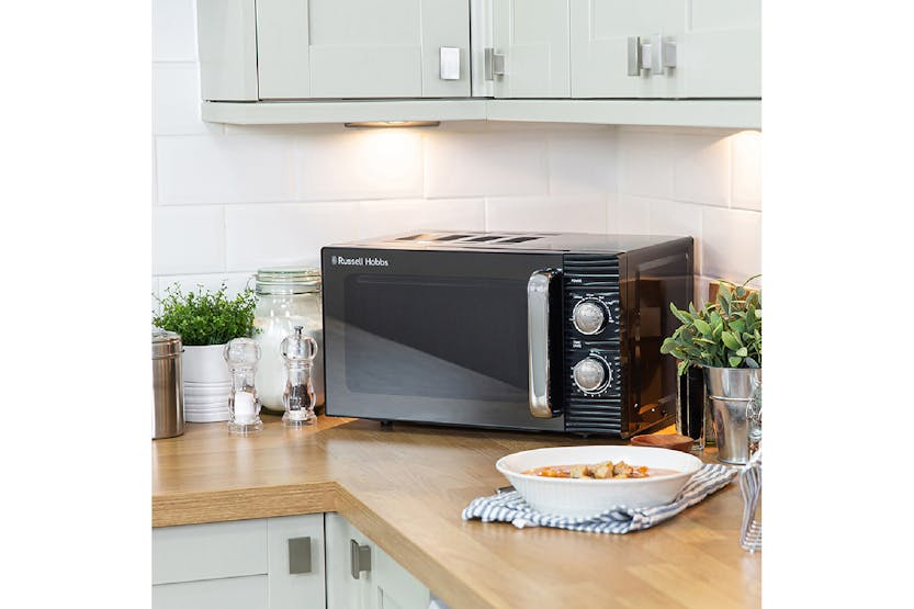 The Russell Hobbs Inspire 17L 700W Freestanding Microwave in Black combines style and functionality to make cooking quick and convenient. With five power levels and a defrost setting, this microwave offers complete cooking control and saves you time. The 24.5cm glass turntable and 11" plate capacity make it perfect for everyday use, while the sleek design adds a touch of class to any kitchen. Say goodbye to complicated cooking with this easy-to-use microwave. Upgrade your kitchen with the Russell Hobbs Inspire 17L 700W Freestanding Microwave in Black. Boasting a defrost setting, 30-minute timer, and non-slip feet, this microwave offers convenience and efficiency. The 24.5cm glass turntable and 11" plate capacity make it ideal for everyday use, while the stylish design adds a touch of elegance to your home. Enjoy quick and easy cooking with this versatile appliance.