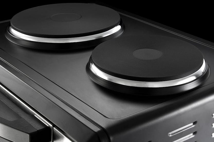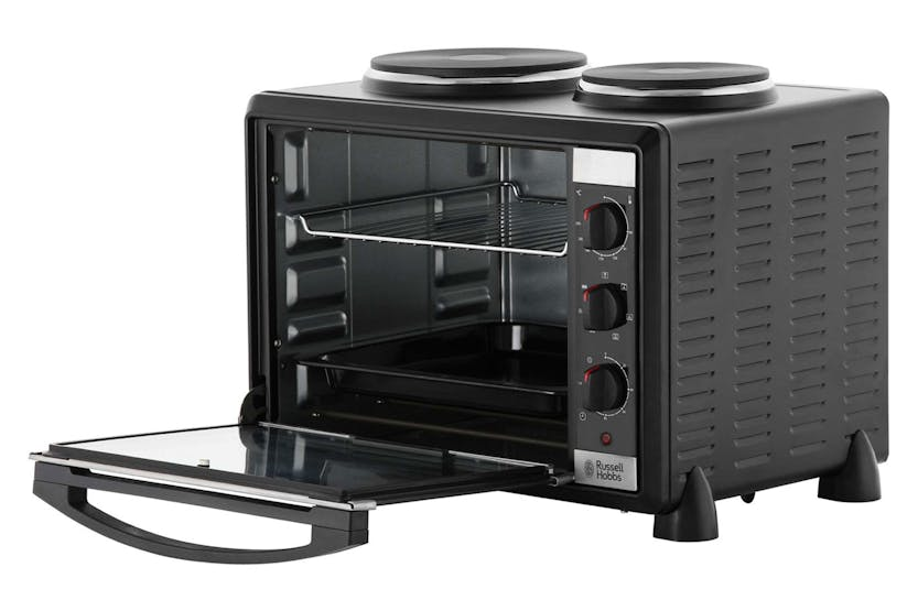 The Russell Hobbs Mini Kitchen Multi-Cooker with Hotplates | 22780 is the ultimate space-saving appliance for your kitchen. With a fan-assisted oven, adjustable thermostat control, and double hotplates, this compact cooker allows you to roast, bake, grill, fry, and boil with ease. The additional baking tray and grilling rack make cooking multiple items at once a breeze, while the easy-to-clean design saves you time on chores and lets you focus on enjoying your culinary creations. Experience the convenience and versatility of the Russell Hobbs Mini Kitchen Multi-Cooker with Hotplates | 22780. With its compact size, powerful oven, and double hotplates, this appliance is perfect for all your cooking needs. Say goodbye to calling in an electrician - simply plug in and start cooking. Plus, the included baking tray and grilling rack make meal preparation a breeze. Save time on cleaning and enjoy more time tasting your delicious dishes with this all-in-one kitchen essential.