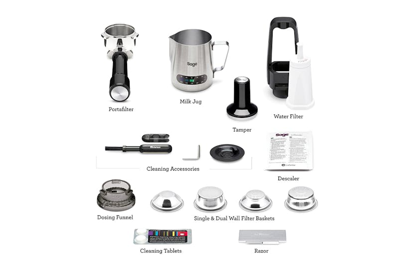 Experience true cafe quality without the need for a barista with the Sage Barista Express Espresso Coffee Machine. This brushed stainless steel machine allows you to create rich, full-flavored espresso in less than a minute, thanks to its dose-control grinding and precise espresso extraction features. Enjoy perfectly balanced taste, irresistible body, and silky, velvety mouthfeel with every cup. Included with the machine are essential accessories like a stainless steel portafilter, milk jug, cleaning tools, and more. With adjustable grind settings, manual override, and pre-infusion function, this espresso machine gives you full control over your coffee-making process. Elevate your at-home coffee experience with the Sage Barista Express Espresso Coffee Machine.