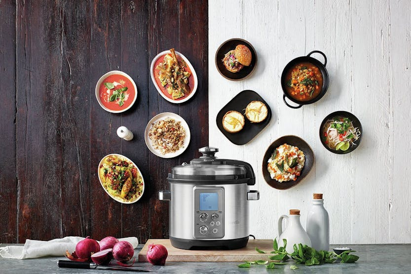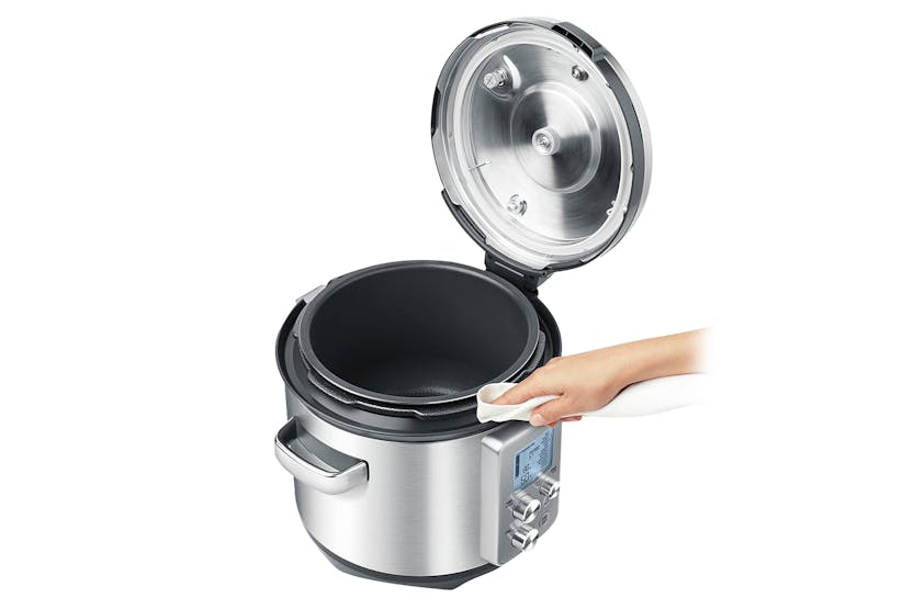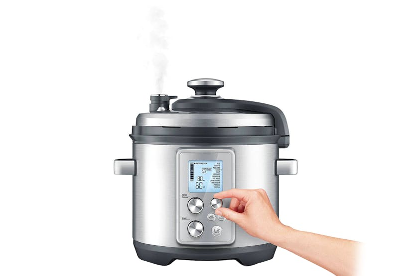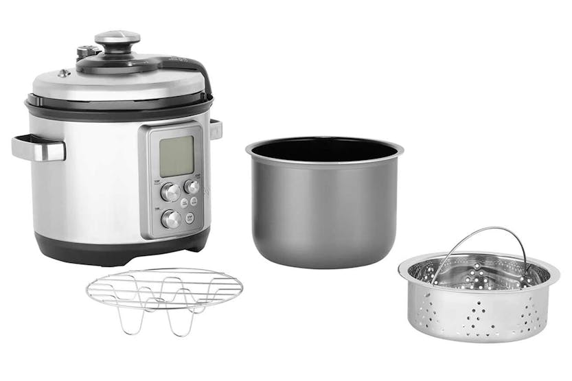 The Sage The Fast Slow Pro Pressure Cooker in Brushed Stainless Steel is a versatile kitchen essential that combines fast and slow cooking modes to bring out the best flavors and textures in your meals. With dual sensors for precise temperature and pressure control, 11 pressure cook settings, and a hands-free auto steam release, this pressure cooker makes cooking easy and safe. The easy-to-clean design, LCD display, and included stainless steamer basket and rack make this pressure cooker a must-have for any kitchen. Upgrade your cooking experience with the Sage The Fast Slow Pro Pressure Cooker. With its advanced features like dual sensors, automatic steam release, and 11 pressure cook settings, this pressure cooker ensures perfectly cooked meals every time. The stainless steel construction, triple safe lid, and easy-to-clean design make it a durable and convenient addition to your kitchen. Order online now to enjoy the convenience and versatility of this high-quality pressure cooker.