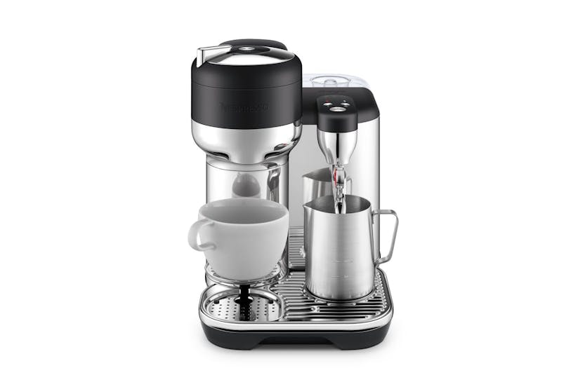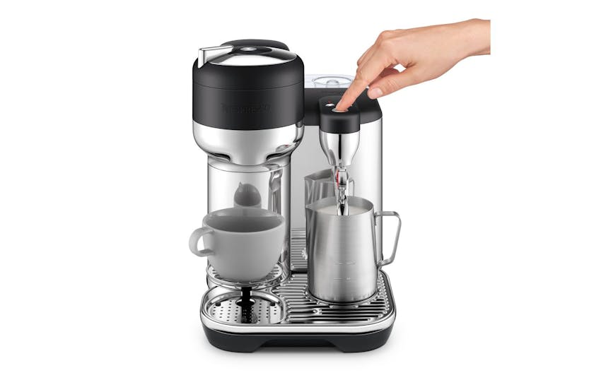 Description Experience barista-grade coffee from the comfort of your home with the Sage the Vertuo Creatista Black Truffle Coffee Machine . Its versatile functionality and sleek stainless-steel build lets you get lost in the pleasurable process of coffee making, tailored exactly to your liking. Built to prepare a wide variety of coffee options, indulge in the unadulterated taste of black coffee or let your culinary creativity flourish by crafting your own milk recipes. Whether you're in the mood for a robust Double Espresso or a comforting Flat White, this innovative machine caters to all of your coffee cravings while bringing premium café vibes right to your kitchen. The integrative steam wand gives you the agency to froth your milk to your ideal creaminess, presenting the perfect canvas for some latte art magic. Warmed either to your liking or automatically by the machine, we promise a unique blend always in sync with your taste. The game-changing Intelligent Brewing Technology , combined with an auto-reading feature for each unique Nespresso capsule code, guarantees the Vertex Creatista brews your espresso or lungo to unparalleled perfection. It even holds the potential to double click for a shortened extraction, producing the ideal foundation for milk coffee recipes. The Automatic Milk Texturing feature enhances your coffee and milk experience, letting you delve into the art of latte making with an automated, hands-free steam wand. It's splendidly easy to achieve café-quality milk texture at home, the steam wand purges itself post each use, ready for your next culinary feat. From our Aeroccino3 black milk frother, your coffee maker's perfect sidekick, to the convenient travel mug brewing function, it's these considerate measures that sets our product apart. Polishing off with a small cup support seamlessly integrating into the drip tray when inconspicuous, the Sage the Vertuo Creatista is a stylish addition to your kitchen decor. In our mission to keep you in sync with our latest coffee endeavours, Sage the Vertuo Creatista is integrated with Bluetooth technology and Wifi capability. This provides real-time guidance, alerts, and tips for maintenance and usage, creating a complete coffee indulging experience, ideal for all latte enthusiasts. Key Features: Versatile Coffee Options Automatic milk texturing Integrative steam wand for milk frothing Premium stainless-steel construction Inbuilt Bluetooth and Wifi support for Machine connectivity Travel mug compatibility Despite the substantial feature-list, the machine is adequately compact, ready to blend into your kitchen aesthetics. With a coffee creation this effortless, filled with creative options, it has never been simpler to stay energised throughout your day or impress your guests with café-quality servings. So, why wait? Start crafting your perfect coffee moments at home today with Sage the Vertuo Creatista Black Truffle .
