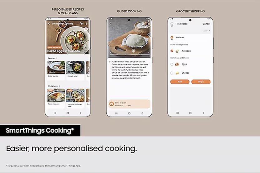 Enhance your cooking experience with the Samsung Built In Compact Microwave Combination Oven. With features like Air Fry for healthier frying, Microwave Combi for faster cooking, and Natural Steam for juicy yet crispy dishes, this oven offers convenience and versatility. The SmartThings Cooking function makes meal planning and grocery shopping effortless, while the 50L capacity allows you to cook more in one go. Plus, the modern design and choice of stylish colors add a touch of elegance to your kitchen. Say goodbye to tedious oven cleaning with the Steam Cleaning feature, and enjoy a seamless cooking experience with intuitive controls.