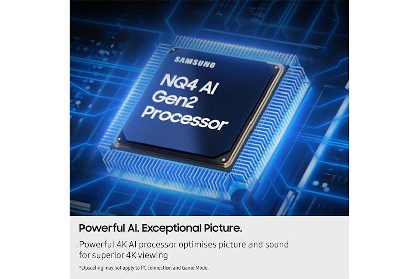 Upgrade your entertainment experience with the Samsung QN70F 55" 4K HDR Neo QLED Smart TV. Powered by advanced NQ4 AI Gen2 processor, this TV delivers bright highlights and bold contrasts for exceptional color accuracy and smoother motion performance. With features like 4K AI upscaling, Quantum Matrix Technology Slim, AI Sound Pro, and Motion Xcelerator 144Hz, this TV offers immersive visuals and dynamic audio. Pair it with the recommended Q600F soundbar for cinematic surround sound and deeper bass. Access personalized content recommendations and gaming options with the intuitive Tizen OS, while staying secure with Samsung Knox security. Elevate your viewing experience with the Samsung QN70F Neo QLED TV. Immerse yourself in superior image quality and sound with the Samsung QN70F 55" 4K HDR Neo QLED Smart TV. This TV features AI-driven image processing, Quantum Matrix Technology Slim, AI audio capabilities, and higher refresh rates, perfect for fast-paced action. Enjoy Pantone validated color and enhanced realism, along with a sleek AirSlim design with a stylish center stand. Stay ahead with ultra-smooth, lag-free visuals for gaming and sports viewing. Upgrade to the Samsung QN70F for a customizable, secure, and smart viewing experience
