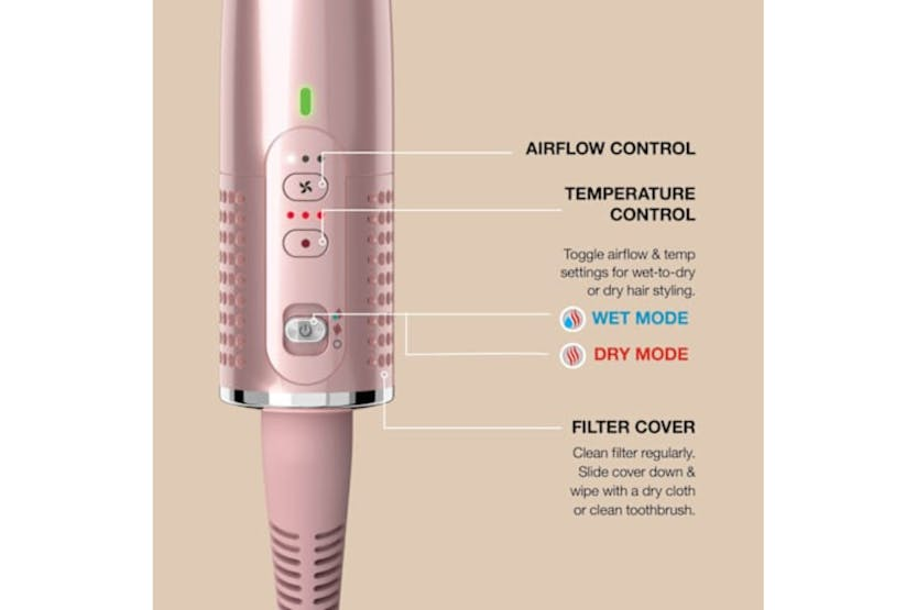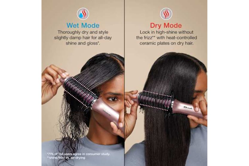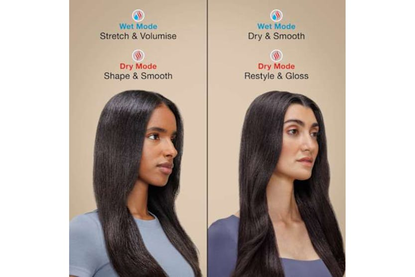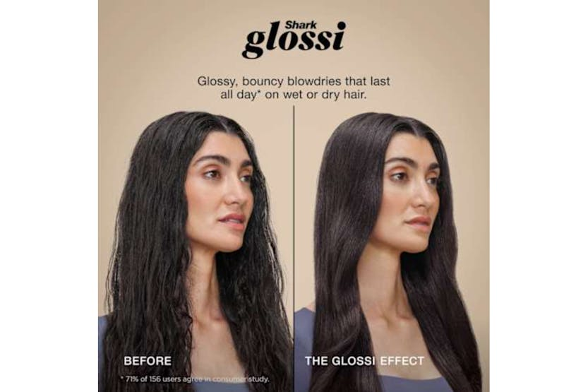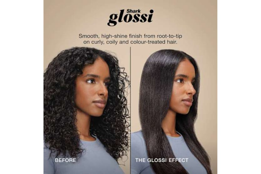 Description Heat-Controlled Ceramic Plates The ceramic plates deliver an even heat distribution to smooth hair with each pass for a salon-quality finish. Accessible Styler Tip Hold the styler tip for better control while drying and styling. Synthetic & Natural Bristles Help to grip, smooth and reduce the frizz* while styling. Wet & Dry Mode Use Wet Mode to add volume and lift, or Dry Mode to smooth and refresh – perfect for styling on both wet and dry hair. 2-in-1 Styling Tool Combines heat-controlled ceramic plates with powerful airflow to smooth and style in one easy step – no need for separate tools. Frizz-Free Finish Delivers sleek, glossy results without the frizz*, even on curly, coily or colour-treated hair. 24-Hour Gloss Lock Keeps your style looking fresh and shiny all day long***. Dual Styling Modes Use Wet Mode to add volume and lift, or Dry Mode to smooth and refresh – perfect for styling on both wet and dry hair. Salon-Quality Results at Home Suitable for all hair types, giving you that just-stepped-out-of-the-salon look and feel every time. The Shark Glossi 2-in-1 Hot Tool and Air Glosser combines heat-controlled ceramic plates with powerful airflow to smooth your hair with every pass – without the frizz* or heat damage**. It stretches, smooths and adds bounce to all hair types. Achieve a glossy, bouncy blow-dry that lasts all day***, whether your hair is wet or dry. Sleek and smooth or big, glossy volume? You don’t have to choose. Whatever your hair type, enjoy that fresh-from-the-salon look – and feel – every single time with the Shark Glossi 2-in-1 Hot Tool and Air Glosser. The combination of heat-controlled ceramic plates and high-speed airflow delivers a fast, bouncy blow-dry without heat damage**. 24-Hour Gloss Lock* helps keep the frizz at bay, leaving your hair glossy, shiny and full of life – yes, even curly, coily and colour-treated hair**. Designed for use on wet or dry hair, you can style with confidence in two distinct modes. Wet Mode adds volume and lift, while Dry Mode smooths and refreshes with every pass. Go from wet to shiny, glossy dry hair – all with one tool. Notes: 1. *Shine/frizz comparison vs. air-drying 2. **In wet-to-dry mode 3. ***71% of 156 users agreed in a consumer study Product Features: Dry mode: 215°C Heat settings: Low, medium, high Product weight: 0.81kg Height: 33cm Width: 8cm Depth: 8cm
