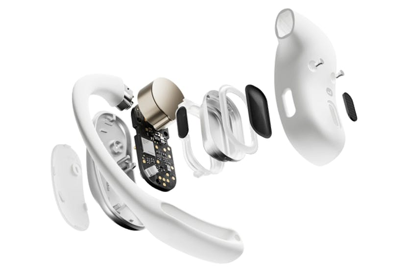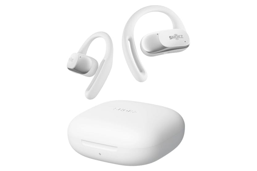 Experience ultimate comfort and secure fit with the Shokz OpenFit Air Open-Ear True Wireless Earbuds in White. Featuring an innovative Air-Earhook design and ergonomic dual-bevel design, these earbuds provide a stable and snug fit for all-day wear. Enjoy balanced, natural sound with DirectPitch technology and up to 28 hours of listening time with the charging case. Stay connected to your surroundings while enjoying your favorite music with the open-ear design, making these earbuds perfect for workouts, commutes, work, and leisure activities. With IP54 water and sweat resistance, multipoint pairing, and quick charging capabilities, the Shokz OpenFit Air earbuds offer convenience and versatility for your everyday activities. The sleek design and smart mic technology ensure clear voice capture, while the customizable touch controls and Bluetooth 5.2 connectivity provide a seamless and hassle-free user experience. Elevate your audio experience with these stylish and functional true wireless earbuds.
