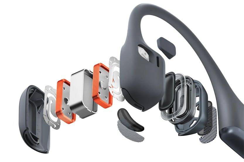 Experience unparalleled audio performance with the Shokz OpenRun Pro 2 Open-Ear Wireless Headphones in Black. Featuring groundbreaking dual drivers and a custom algorithm for 3D audio perfection, these headphones offer a dynamic listening experience with minimal vibrations. The signature open-ear design ensures you stay connected to your surroundings while enjoying crystal clear sound, making them perfect for workouts and everyday use. With up to 12 hours of playtime, quick charging, and IP55 water resistance, the OpenRun Pro 2 headphones are designed to enhance your listening experience wherever you go. The Shokz OpenRun Pro 2 headphones combine cutting-edge technology with a comfortable, secure fit for an unbeatable audio experience. With features like AI noise reduction for clear communication, wind-resistance for calls on the go, and 4 EQ modes for customizable sound, these headphones cater to all your listening needs. Whether you're out for a run or on a call in a noisy environment, the OpenRun Pro 2 headphones deliver premium sound quality and comfort, making them the perfect companion for your active lifestyle.