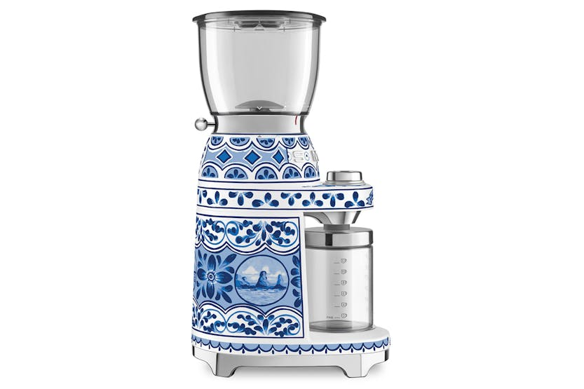 Experience the perfect cup of coffee with the Smeg 50's Dolce & Gabbana Retro Style Coffee Grinder. Featuring 30 grinding levels and a conical burr design, this electric grinder allows you to customize your grind for espresso, drip filter, cafitiere, or moka pot brewing. With anti-slip feet, an integrated cord, and a detachable grinder for easy cleaning, this coffee grinder combines style and functionality in one sleek package. Boasting a glossy finish, stainless steel burrs, and a unique Decorated & Special colour scheme, the Smeg CGF01DGBUK Coffee Grinder is a must-have for any coffee enthusiast looking to elevate their home brewing experience. Say goodbye to pre-ground coffee and hello to freshly ground beans with this stylish and high-quality appliance.