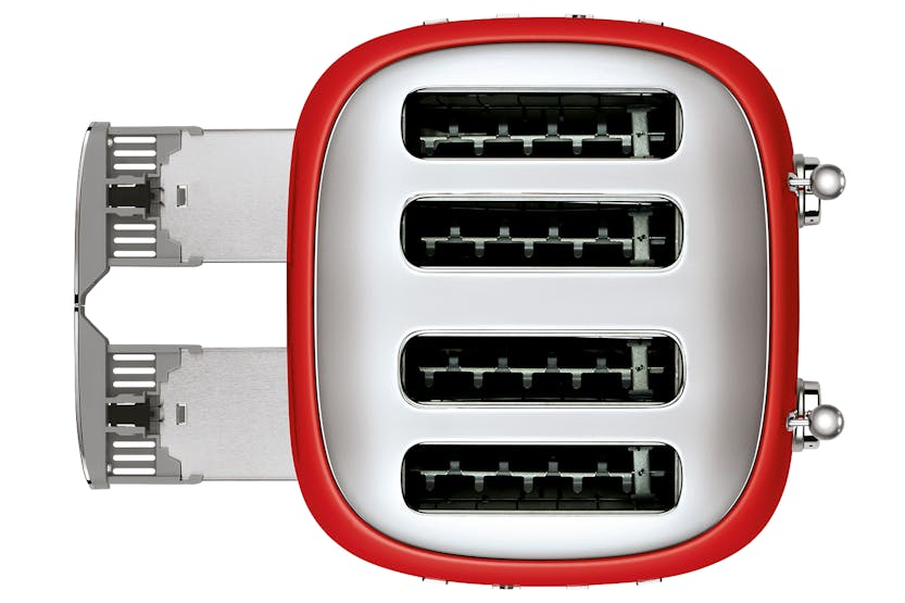 Upgrade your breakfast routine with the Smeg 50's Retro Style Aesthetic 4 Slice Toaster in vibrant red. This toaster features six browning levels and three pre-set programmes for versatile toasting options. With four large slots and self-centering racks, you can toast bread of any size evenly. The stainless steel body, illuminated control knobs, and practical optional accessories make this toaster a stylish and functional addition to your kitchen. Experience the perfect blend of style and functionality with the Smeg TSF03RDUK toaster. Its powerful 2000W operation, anti-slip feet, and built-in cord wrap ensure convenient use. The two independent control panels, removable crumb trays, and large compartments make cleaning a breeze. Elevate your breakfast game with this iconic toaster that combines retro aesthetics with modern features for everyday practicality.
