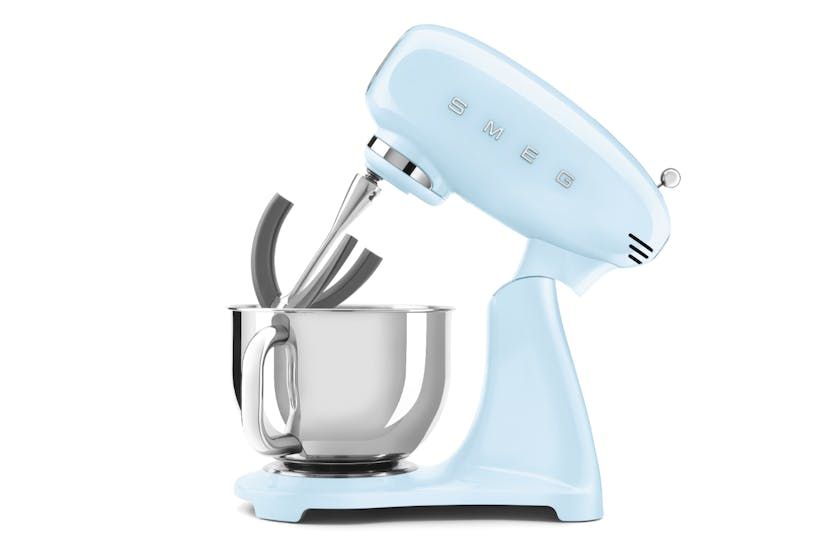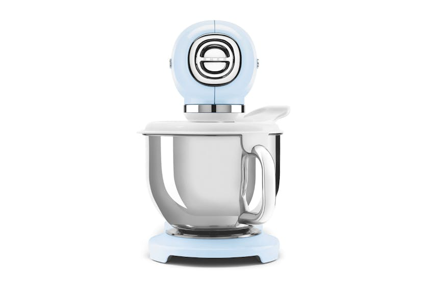 Enhance your kitchen with the Smeg 50's Retro Style Stand Mixer in Pastel Blue. This elegant and functional mixer features an 800W motor, 10 speed levels, and a planetary rotary movement for perfect dough every time. With various accessories available, including a pasta set, slicer, grater, and more, the possibilities are endless when using this versatile mixer. The robust metal body and stainless steel bowl ensure stability and durability, making it a must-have for any home chef looking to mix with style and ease.