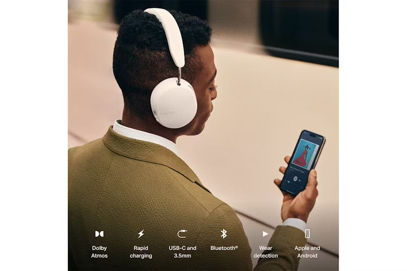 • Specs • General • Brand • Sonos • Product Category • TV & Audio • Product Type • Wireless Headphones • Product Colour • White • Headphone Features • Headphone features Fit • Over-Ear • Features • Noise Cancelling • Wireless Headphones • Compatibility • Android Devices • Bluetooth Enabled Devices • Apple Devices • Cord Length • 1.2 m • Wired or Wireless • Wireless • Microphone • Yes • Jack Plug • 3.5 mm • Included Accessories • Travel case with cable pouch,USB-C to USB-C cable,USB-C to 3.5 mm cable • Sound Features • Noise Cancellation • Yes • Power • Power Source • Battery • Battery & Power • Battery mAh • 1060mAh • Battery Life • Up to 30 Hours • Battery Type • Lithium-ion • Dimensions • Height • 191 mm • Width • 160 mm • Depth • 85 mm • Weight • 0.312 kg • Warranty • Warranty • 24 months