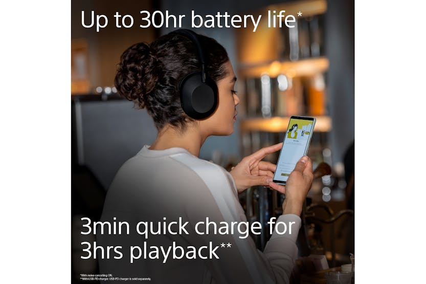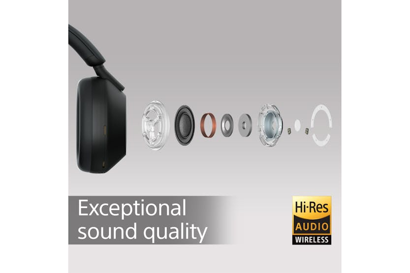 Description Industry-Leading Noise Cancellation From airplane noise to peopleâs voices, our WH-1000XM5 wireless headphones with multiple microphone noise cancelling keep out more high and mid frequency sounds than ever. And with Auto NC Optimizer, noise cancelling is automatically optimised based on your wearing conditions and environment. As of January 1, 2022. According to research by Sony Corporation, measured using JEITA-compliant guidelines. In headband-style of wireless noise-cancelling headphones market. Multi Noise Sensor Technology With four microphones on each earcup, this is our biggest ever step forward in noise cancelling. Ambient sound is captured even more accurately for a dramatic reduction in high frequency noise. Thanks to Auto NC Optimizer, noise cancelling performance is always and automatically optimised based on wearing conditions and external environmental factors such as atmospheric pressure. Incomparable Noise Cancelling Specially developed by Sony, the new Integrated Processor V1 unlocks the full potential of our HD Noise Cancelling Processor QN1. This unique combination of technology controls eight microphones to deliver unprecedented noise cancelling quality. Superlative Sound, Engineered to Perfection The specially designed 30mm driver unit with light and rigid dome using carbon fiber composite material improves high frequency sensitivity for more natural sound quality. Sony unique technologies include a premium lead-free solder containing gold for excellent conductivity, Fine Sound Resistor for even power distribution, and optimised circuitry for an improved signal-to-noise ratio to ensure clear, consistent sound. Enjoy High-Resolution Audio with and Without Wires The WH-1000XM5 supports High-Resolution Audio and High-Resolution Audio Wireless, thanks to LDAC, our industry-adopted audio coding technology. LDAC transmits approximately three times more data[2] than conventional Bluetooth audio for exceptional High-Resolution Audio quality.[3] At the maximum transfer rate of 990 kbps. Need to set the function to âPriority on Sound Qualityâ using the Sony | Headphones Connect app. Compatible devices supporting LDAC will be needed. Specially Designed 30mm Driver Unit The specially designed 30mm driver unit featuring a soft edge enhances noise cancelling, especially in low frequency ranges, helping you enjoy your music precisely without ambient noise. The carbon fiber composite material realizes light weight and high rigidity dome and improves sound clarity, especially in high frequency ranges. Multiple Microphones, Focused on Your Voice Equipped with four beamforming microphones, these headphones are calibrated to only pick up your voice. An improved signal-to-noise ratio enables them to catch every single word, even when thereâs a lot of noise around. 1000X Series Best Call Quality Ever Our Precise Voice Pickup Technology uses four beamforming microphones and an AI-based noise reduction algorithm to isolate your voice precisely. A newly developed wind noise reduction structure minimises wind noise during calls. Wherever you are, youâll always hear and be heard clearly. Real-Time Restoration of All Your Compressed Files Using Edge-AI (Artificial Intelligence), DSEE Extreme upscales compressed digital music files in real time. Dynamically recognising instrumentation, musical genres and individual elements of each song, it restores high range sound lost in compression.[4] Activate DSEE Extreme from the Sony | Headphones Connect app. Adaptive Sound Control Automatically Adjusts to Whatever You Do Adaptive Sound Control is a smart function that senses where you are and what youâre doing, then adjusts ambient sound settings for the ideal listening experience. When activated, it learns your behaviour and recognises locations that you frequently visit, such as your workplace or a favourite cafĂŠ, and tailors sound to suit the situation. All Day Comfort with a Noiseless Design These lightweight headphones are beautifully finished in newly developed soft fit leather. This material fits snugly around the head with less pressure on the ears while keeping out external sounds. Our noiseless design with stepless slider, seamless swivel and hanger, and silent joints, makes WH-1000XM5 a pleasure to wear. Ultra Clear, Noise-Free Calls With Precise Voice Pickup Technology and advanced audio signal processing, the person on the other end of the call will hear your voice clearly, even when you are in noisy situations. Our noise reduction algorithm was developed with AI machine learning using more than 500 million voice samples to suppress ambient noise and extract your voice clearly in a wide range of environments. [1 = With noise, 2 = Without noise]. Control with Your Voice Get hands-free help â Just say "Hey Google" or "Alexa" to activate your preferred voice assistant.[8] Listen to music, connect with friends, get notiďŹcations, set reminders, and more. You can even control your headphones features like noise cancellation with your voice[9], listen to and interact with emails in Microsoft Outlook, and join Microsoft Teams meetings using Google Assistant or Siri.[10] Google Assistant headphones features, including "OK Google" hot word detection, are only available when connected to a supported Android device. Google and Android are trademarks of Google LLC. Amazon, Alexa and all related logos are trademarks of Amazon.com, Inc. or its affiliates. Google Assistant and Alexa are not available in all languages and countries/regions. Install the Google app and set up with Sony | Headphones Connect app. For Amazon Alexa, install the Amazon Alexa app and set up with Sony | Headphones Connect app. Only available for Google Assistant. Need to have the app installed on your Android device or iOS device. Play My Emails for Outlook Mobile is available for English and Portuguese speaking customers, and Cortana voice assistance for Teams Mobile is only available for English speaking 