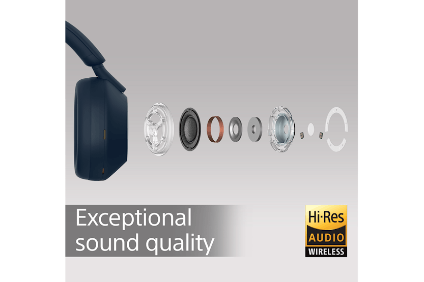 Description Check out the video: See What a Difference Noise Cancelling Can Make Multi Noise Sensor Technology With four microphones on each earcup, this is our biggest ever step forward in noise cancelling. Ambient sound is captured even more accurately for a dramatic reduction in high-frequency noise. Thanks to Auto NC Optimiser, noise-cancelling performance is always and automatically optimised based on wearing conditions and external environmental factors such as atmospheric pressure. Incomparable Noise Cancelling Specially developed by Sony, the Integrated Processor V1 unlocks the full potential of our HD Noise Cancelling Processor QN1. This unique combination of technology controls eight microphones to deliver unprecedented noise-cancelling quality. Specially Designed 30 Mm Driver Unit The specially designed 30mm driver unit featuring a soft edge enhances noise cancelling helping you enjoy your music precisely without ambient noise. The carbon fibre composite material realises light weight and high rigidity dome and improves sound clarity, especially in high-frequency ranges. Superlative Sound, Engineered to Perfection The specially designed 30 mm driver unit with light and rigid dome using carbon fibre composite material improves high frequency sensitivity for more natural sound quality. Sony unique technologies include a premium lead-free solder containing gold for excellent conductivity, Fine Sound Resistor for even power distribution and optimised circuitry for an improved signal-to-noise ratio to ensure clear, consistent sound. Enjoy High-Resolution Audio with and Without Wires The WH-1000XM5 supports High-Resolution Audio and High-Resolution Audio Wireless, thanks to LDAC, our industry-adopted audio coding technology. LDAC transmits approximately three times more data4than conventional BluetoothÂŽ audio for exceptional High-Resolution Audio quality.5 Real-Time Restoration of All Your Compressed Files Using Edge-AI (Artificial Intelligence), DSEE Extreme⢠upscales compressed digital music files in real time. Dynamically recognising instrumentation, musical genres and individual elements of each song, it restores high-range sound lost in compression.6 Industry-Leading Call Quality7 Our Precise Voice Pickup Technology uses four beamforming microphones and an AI-based noise reduction algorithm to isolate your voice precisely. A newly developed wind noise reduction structure minimises wind noise during calls. Wherever you are, youâll always hear and be heard clearly. Multiple Microphones, Focused on Your Voice Equipped with four beamforming microphones, these headphones are calibrated to only pick up your voice. An improved signal-to-noise ratio enables them to catch every single word, even when thereâs a lot of noise around. Ultra-Clear, Noise-Free Calls With Precise Voice Pickup Technology and advanced audio signal processing, the person on the other end of the call will hear your voice clearly, even when you are in noisy situations. Our noise reduction algorithm was developed with AI machine learning using more than 500 million voice samples to suppress ambient noise and extract your voice clearly in a wide range of environments. All Day Comfort with a Noiseless Design These lightweight headphones are beautifully finished in newly developed soft fit leather. This material fits snugly around the head with less pressure on the ears while keeping out external sounds. Our noiseless design with stepless slider, seamless swivel and hanger makes WH-1000XM5 a pleasure to wear. Adaptive Sound Control Automatically Adjusts to Whatever You Do Adaptive Sound Control is a smart function that senses where you are and what you're doing, then adjusts ambient sound settings for the ideal listening experience. When activated, it learns your behaviour and recognises locations that you frequently visit, such as your workplace or a favourite cafĂŠ and tailors sound to suit the situation. For Everyday Convenience, Just Speak-to-Chat As soon as you start a conversation, Speak-to-Chat automatically stops your music and lets in ambient soundâhandy if you want to keep your headphones on or talk hands-free. This smart feature uses microphones built into your headphones and advanced audio signal processing to recognise and react to your voice. Once your chat is over, your music starts playing again automatically.89 Quick Access to Your Favourite Music With Quick Access, you can configure these headphones to resume Spotify music playback with two or three tapsâno need to touch your smartphone.10 Instant Pause. Instant Play. Just take the headphones off and the music stopsâa capacitive sensor knows when you are wearing them. It also helps improve detection accuracy and design. Put the headphones back on and the music starts again. Control with Your Voice Get hands-free helpâJust say âHey Googleâ or âAlexaâ to activate your preferred voice assistant.11Listen to music, connect with friends, get notiďŹcations, set reminders and more. You can even control your headphone features like noise cancellation with your voice12, listen to and interact with emails in Microsoft Outlook, and join Microsoft Teams meetings using Google Assistant or Siri.13 Listen Safely with Sony | Headphones Connect App Check how safely you're listening to music by comparing sound pressure data recorded by your headphones with guidance of the World Health Organisation (WHO). Receive OS notifications when listening levels are too high. Multipoint Connection For total convenience, these BluetoothÂŽ headphones can be paired with two Bluetooth devices at the same time. So when a call comes in, your headphones know which device is ringing and connects to the right one automatically. Youâll also be able to quickly switch your headphones to either of the two devices at the touch of a button. All Day Power and Quick Charging With a huge 30 hours of battery life youâll have enough power even for long trips. If you need to top u