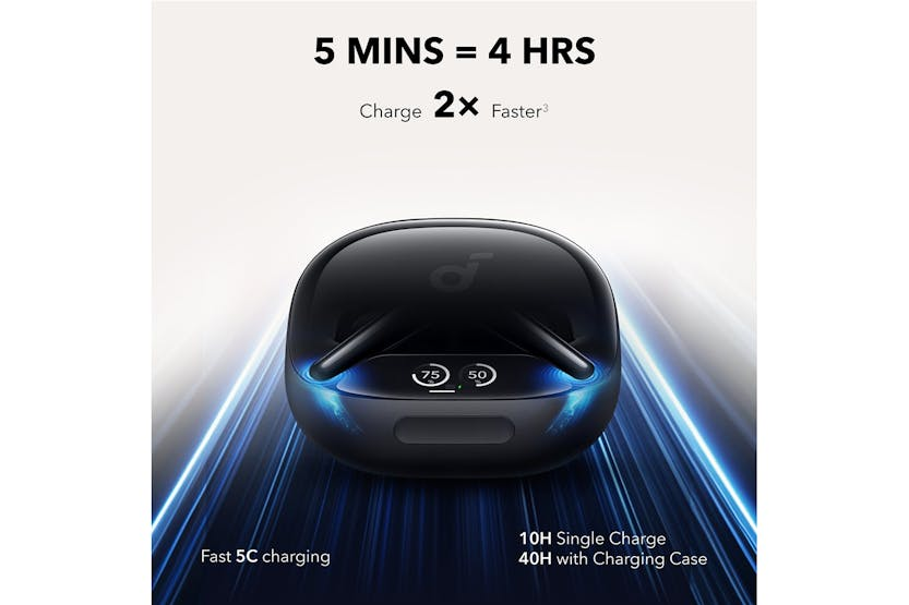 Experience unparalleled noise cancellation with the Soundcore Liberty 4 Pro True Wireless Earbuds in Black. Featuring 7 sensors for 3x stronger noise reduction, adaptive ANC technology, and dual drivers for high-fidelity sound, these earbuds deliver an immersive listening experience. The smart case allows for easy control and fast charging, making these earbuds a must-have for those seeking superior audio quality on the go. Immerse yourself in crystal-clear sound and enjoy a peaceful listening experience with the Soundcore Liberty 4 Pro True Wireless Earbuds. With advanced noise cancellation, dual drivers for rich detail, and a smart case for effortless control, these earbuds offer a premium audio experience. Stay connected and enjoy up to 40 hours of playtime with the fast-charging feature, making these earbuds ideal for music lovers and audiophiles alike.