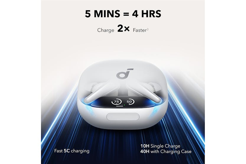 Immerse yourself in a world of crystal-clear sound with the Soundcore Liberty 4 Pro Noise Cancelling True Wireless Earbuds in White. Featuring 7-Sensor Noise Cancelling technology and Adaptive ANC 3.0, these earbuds offer up to 3x stronger noise reduction for a truly immersive listening experience. With dual drivers and a smart case display for easy control, these earbuds provide studio-level high-fidelity music and super-fast charging, making them the perfect companion for music lovers on the go. Elevate your audio experience with the Soundcore Liberty 4 Pro Earbuds. Indulge in crisp, full-bodied sound with enhanced noise cancellation and real-time adaptive noise reduction. The Liberty 4 Pro Earbuds offer 3x more detailed sound, dual drivers, and 6-mic AI clear calls for clear communication wherever you are. With a fast-charging feature and a variety of ear tip sizes for a custom fit, these earbuds are designed to provide a seamless listening experience. Upgrade your audio game with the Soundcore Liberty 4 Pro Earbuds and enjoy unparalleled sound quality in a sleek and stylish design.