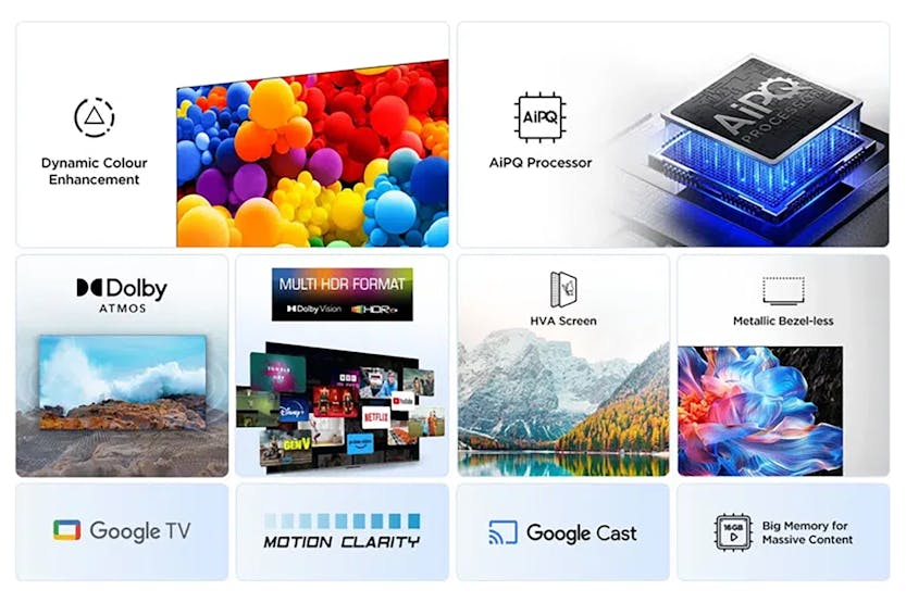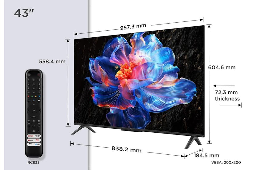 Experience the ultimate in picture quality with the TCL 43'' Direct LED 4K HDR Smart TV | 43V6C. Featuring vivid, accurate colors and fine details, this TV supports multiple HDR formats for a superior viewing experience. The AiPQ Processor ensures crystal-clear visuals, while Dolby Atmos delivers immersive sound. With Google TV, voice control, and Chromecast capabilities, this TV offers endless entertainment options. Plus, enjoy eye care technologies and a sleek, bezel-less design for a truly immersive viewing experience. Upgrade your home entertainment with the TCL 43'' Direct LED 4K HDR Smart TV | 43V6C. From vibrant colors to dynamic contrast, this TV delivers stunning visuals with the AiPQ Processor and HDR support. Enjoy hands-free voice control, Google Assistant, and Chromecast for seamless streaming. With built-in eye care technologies and a stylish metallic bezel-less design, this TV offers both style and functionality for a complete viewing experience.