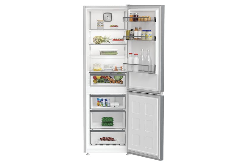 Upgrade your kitchen with the Whirlpool WHK26363XP5UK Fridge Freezer. This sleek silver appliance features innovative No Frost technology to prevent ice build-up, glass shelves for durability and elegance, and a convenient Holiday Mode function to reduce energy consumption when you're away. With a spacious 310-340 litre capacity and advanced features like InverterCompressor and Dual No Frost, this fridge freezer is designed to meet all your family's needs while providing long-lasting reliability with a 25-year VDE certification. Experience optimal cooling performance and quiet operation with Whirlpool's Inverter Compressor technology, while enjoying the convenience of Temperature Alarm and Vacation Mode features. With the WHK26363XP5UK Fridge Freezer, you can effortlessly store your food and drinks in style, knowing that you have a high-quality appliance that will last for years to come.