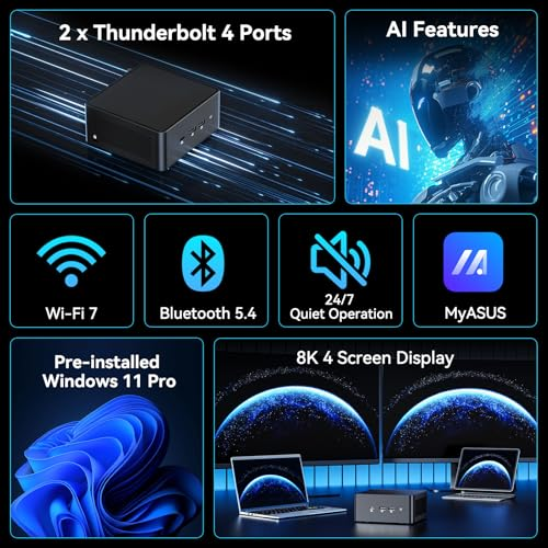 [Unmatched AI Performance] The ASUS NUC15 PRO mini pc NUC15CRHU7 redefines compact computing with its powerful Intel Core Ultra 7 255H processor, featuring dedicated AI acceleration through an integrated NPU. This intelligent architecture delivers exceptional AI performance for seamless experiences, local large language model (LLM) operation, and accelerated creative workflows. Whether you're running AI-enhanced applications, content creation tools, or local AI inference tasks, the NUC15 PRO mini pc handles demanding workloads efficiently while maintaining responsive system performance. [Pro-Grade Cooling Design] The ASUS NUC15 PRO NUC15CRHU7 mini desktop computer maintains optimal performance under load with an advanced thermal solution featuring a copper heatsink, heat pipes, and a tuned ventilation system. The intelligent cooling design ensures efficient heat dissipation while maintaining quiet operation. Whether handling compute-intensive business applications, extended multimedia tasks, or sustained AI workloads, this thermal management system prevents thermal throttling and ensures consistent performance delivery.