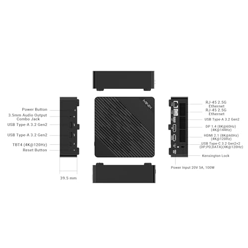 【AI Mini PC with Intel Ultra 5】:Powered by the Intel Core Ultra 5 125H processor with 16 cores and 24MB cache, the MINIX Elite EU512-AI delivers exceptional AI-driven performance. The integrated Intel AI Boost NPU accelerates machine learning tasks, enhancing efficiency for multitasking, data processing, and content creation 【Fast RAM and Expandable Storage】:Equipped with 16GB DDR5 RAM and a 512GB PCIe 4.0 SSD, the Elite EU512-AI ensures fast performance and ample storage. For future-proofing, the system supports memory expansion (up to 96GB,not included) and storage upgrades (up to 8TB,not included)) with dual SO-DIMM and M.2 PCIe slots, giving you ultimate flexibility, ensuring long-term adaptability to evolving workflows
