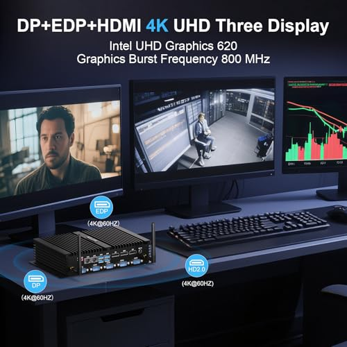 【OS&CPU&GPU】➥Industrial mini pc pre-installed Windows 11 Pro 64 bit system (Windows is activated), intel Core i7-8550U Processor (8M Cache, up to 4.00 GHz) and Intel UHD Graphics 620 ensure smooth operation such as games, office, navigation, browse or multitask. 【4K HD Three Screen Display】➥HISTTON H4 mini desktop supports HDMI , DP and EDP Three screen display. It can use personal computer, or be used as HTPC to set up your home theater, meaning that you can use it in your office, training center, factory, internet cafe or any other places that a computer is required. 4K ultra HD (UHD) video playback offers excellent viewing experience.
