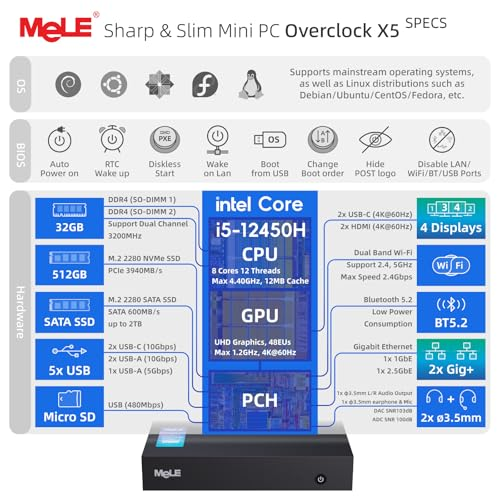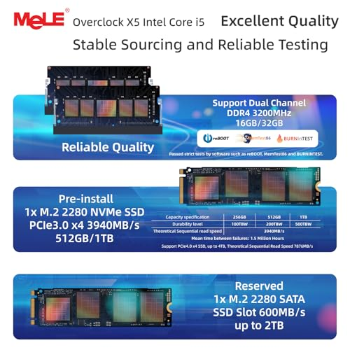 High Capacity & Expandable Storage Options - This Mini PC features 32GB DDR4 3200MHz RAM (16GB x2, support dual channel, upgradable to 64GB) and a 512GB PCIe 4.0 NVMe SSD (expandable to 2TB). It also offers an M.2 2280 SATA slot for up to 2TB extra storage. This robust capacity ensures smooth startups and seamless multitasking. It enhances OS and game performance. Ideal for demanding tasks like gaming or rendering 3D graphics, this mini desktop supports ultra-high-speed PCIe 4.0 SSDs High Capacity & Expandable Storage Options - This Mini PC features 16GB DDR4 3200MHz RAM (16GB x 1, support dual channel, upgradable to 64GB) and a 512GB PCIe 4.0 NVMe SSD (expandable to 2TB). It also offers an M.2 2280 SATA slot for up to 2TB extra storage. This robust capacity ensures smooth startups and seamless multitasking. It enhances OS and game performance. Ideal for demanding tasks like gaming or rendering 3D graphics, this mini desktop supports ultra-high-speed PCIe 4.0 SSDs