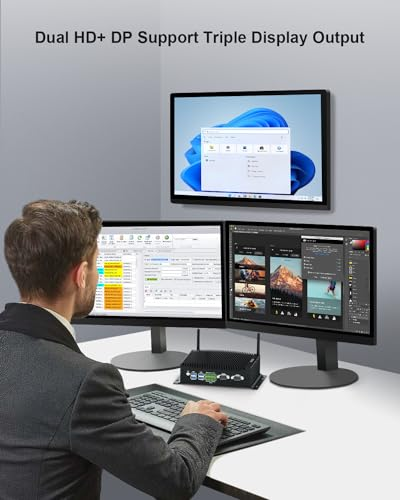 ăExcellent Performance & Systemăâ¨The Mini PC is equipped with 6 cores 10th Gen Core i7-10810U Processors(up to 4.9GHz). Come with Windows 11 Pro(preinstalled), supports Linux and Ubuntu systems. Excellent CPU Performance can easily control various complex work procedures. Energy-saving design, perfect for office work, streaming video, web browsing, distance learning, and home entertainment. ăUHD Graphics & Triple Displayăâ¨Fanless mini pc integrates UHD Graphics to deliver powerful graphics processing power. 4K@60Hz UHD video editing, and playback. And mini desktop pc can connect 3 screens by 2 HD-MI port, 1 DP port, efficiently handle your tasks, and meet your specific needs.