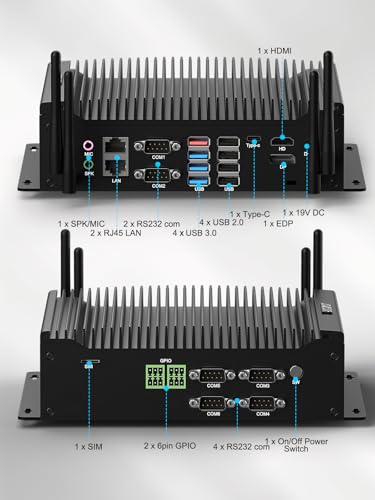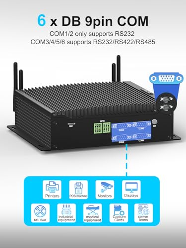 Industrial PC 6 COM, Fanless Mini PC Core i7-10610U, 4K Triple Display, Dual Lan Win 11 Pro, 8GB DDR4 256GB SSD, Mini Desktop Computer for Industrial/Office/Home