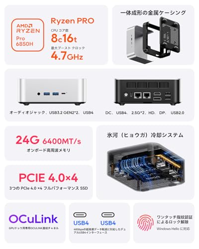[Powerful 6850H Mini Desktop PC] AOOSTAR MACO mini PC features a powerful Ryzen7 PRO 6850H processor (8 cores/16 threads, up to 4.7 GHz) and a 680M graphics card, along with 24 GB of LPDDR5-6400MHz onboard memory, providing a solid foundation for enjoying exceptional performance. This version includes a 1TB SSD. [Triple SSD Expansion & Fingerprint Unlock] MACO mini computer features three full-size M.2 PCIe 4.0 x4 slots, offering unparalleled storage flexibility. An integrated fingerprint sensor allows for secure one-touch unlocking, compatible with Windows Hello. Fingerprint encryption further protects your computer data.