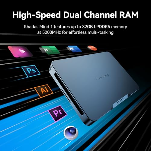 khadas Mind Mini PC, Intel Corei5-1340P 4.6GHz Mini Portable Desktop Computers with 5.55Wh Standby Battery,16GB LPDDR5, 512GB PCIe4.0 SSD, Windows11 for Home Office Support 4K Display/WiFi 6E/BT5.3