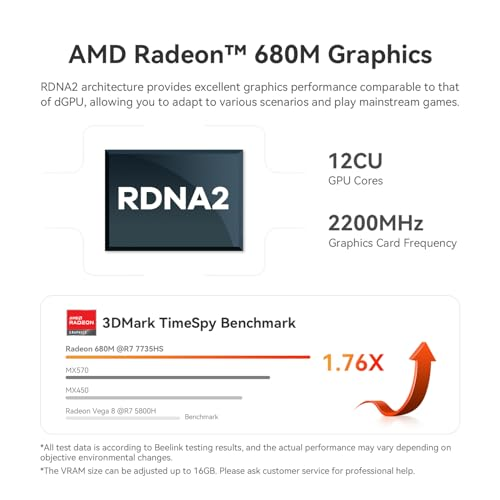 【Ryzen7 5700U Processor】Beelink SER5 Pro comes with AMD Ryzen7 5700U Processor, 8-Core 16-Thread up to 4.30GHz. 【16G/32GB RAM & 500G/1TB SSD】Pre-installed Dual DDR4 RAM up to 3200MHz. The top brand in the industry M.2 NVMe PCIe3.0 2280 SSD, and supports add 2.5inch HDD.
