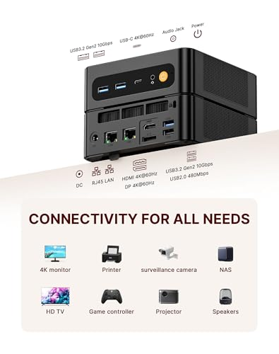 【Ryzen 7 6800H CPU】 N2 pro mini computer is equipped with powerful performance core Ryzen 7 6800H processor, based on Zen 3 + architecture, 8 cores and 16 threads, frequency up to 3.2GHz - 4.7GHz, 45W TDP and virtualization technology, which can easily handle various complex tasks and provide excellent performance for work, creativity and entertainment. Whether you are editing videos, making music, programming, or playing light to moderate games, N2 pro mini pc can provide smooth, sensitive and convenient operation for professionals and ordinary users. 【32GB DDR5 and 512GB SSD】The N2 pro mini computer is equipped with a standard 32GB DDR5 4800Mhz SODIMM dual-channel memory, which supports up to 64GB. In terms of storage, the N2 pro mini pc has a 512GB M.2 NVME PCIe 3.0 x 4 2280 SSD, and also supports M.2 NVME PCIe 4.0 x4 2242 SSD expansion. , ensuring delay-free multitasking and fast data access. You can store thousands of photos, songs, or hours of HD videos. The powerful combination of memory and storage space makes it ideal for professional and personal multimedia needs.