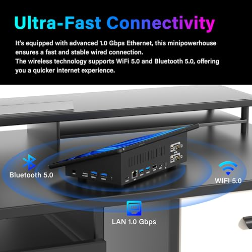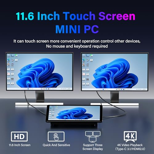 Powerful Touchscreen Mini PC-Powered by the efficient 12th Gen Intel N5095 Processor (4 cores, 4 threads, 6MB cache, 2.0GHz base frequency, bursting up to 2.9GHz), this mini desktop ensures smooth multitasking and responsive operation for everyday computing. Mini Computer Desktop PC with 11.6-inch Touchscreen Display-Enjoy crisp, vibrant visuals on a 1280×800 HD IPS display with wide viewing angles, ensuring excellent clarity from virtually any perspective. Equipped with G+G 5-point multi-touch technology, this compact computer delivers smooth and responsive touch control-ideal for office work, industrial applications, and online learning.