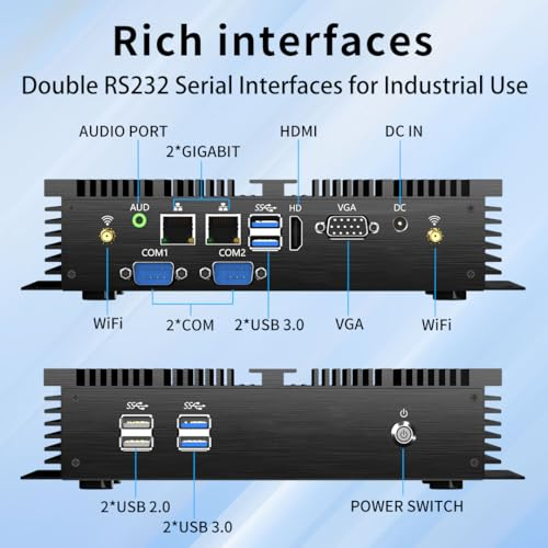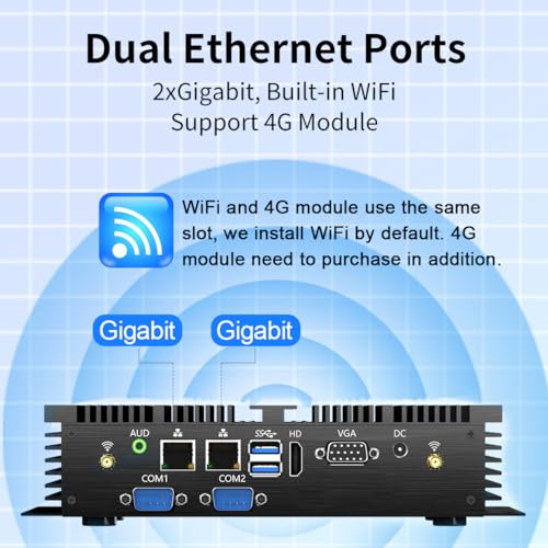 ✔️Industrial Computer: Equipped with Core i7-5500U, 2 Cores, 4 Threads, Base 2.4GHz, Max 3.0GHz | 16G RAM | 512G SSD| Preinstalled with Windows 10 Pro, support Linux system. Comes with dual LAN, double RS232 COM ports and support 4G module. This mini PC can be used with a variety of devices such as projectors, printer, PLC programmer, barcode gun. Applied in office, parking lot, school, supermarket, factory, Lab, hotel front desk and vehicle. ✔️Rich I/O Interfaces: 4xUSB3.0, 2xUSB 2.0, 1xVGA, 1xHDMI, 2xLAN, 2x RS232 COM, 1x Audio input/output. Simply connect the VGA and HDMI video outputs at the same time, you can enjoy the simultaneous display of dual screen, meeting your daily needs. Dual ethernet ports can be used to meet special network requirements. SIM/4G function couldn't be used with Wi-Fi function at the same time.