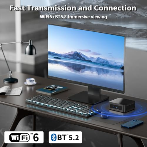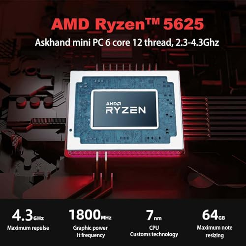 【New Upgrade AskHand Mini PC 5625】Introducing a mini PC equipped with AMD Ryzen 5 5625-6 cores/12 threads (up to 4,3Ghz, 15W TDP) and Radeon Graphics 8 cores 1800MHz. Turn your desktop into a powerful workstation by simply adding a keyboard and mouse. WiFi 6 (802.11ac) and Bluetooth 5.2 enable faster and more stable data transmission and no network congestion, allowing for more wireless support. Say goodbye to cluttered desktops. Mini PC is equipped with 16GB of DDR4 RAM 3200MHz, with dual-channel DDR4 that can be upgraded to a maximum of 64GB. The 512GB M.2 PCIe 3.0 2280 SSD (and 2242 expandable to a maximum of 2TB) ensures lightning-fast data access. 【Immersive Triple Screen Display & 4K@60Hz~8K@30Hz Output】 Embrace stunning visuals with the AMD Radeon 5 5600H 6C/12T, clocked at 1900 MHz, the Mini PC provides potent graphics processing. With the ability to support triple screens at 4K@60Hz, courtesy of (HDMI+DP) and Type-C (4K@60Hz~8K@30Hz) outputs, this mini PC excels in tasks ranging from web browsing, Microsoft Office tasks, design projects, 4K video playback, and multitasking.