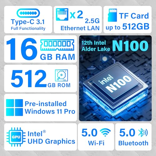 ă2025 N100 mini pc Win 11 pro &Pre-installed Win 11 ProăThe 12th Gen Alder Lake N100ďźQuad-coreďź mini pc is 4 Core 4 Threads 6MB cache, built in 16GB RAM 512GB eMMC, base frequency burst speed up to 3.4GHz. More powerful performance and smoother running than J4125/N5095/N5100/N5105/N95. it comes with the latest Win 11 Pro system and also supports other types of systems such as, Ubuntu, and Linux. All these systems have undergone stable testing to make your mini PC more convenient to use. ăQuiet Fanless Design & Aluminium MaterialăHEIGAOLAPC fanless mini computer has a special cooling system, aluminium shell has efficient heat dissipation to pretend overheating, no fan no noise. Providing a quiet and stable computing environment when using, supports 7/24 hours operation.