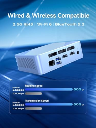 【Intel Twin Lake N150 CPU】Enjoy the 4 cores/4 threads of the N150 processor (up to 3.60GHz, 6MB cache). The 6W TDP consumes less power than a standard desktop PC. This MINISFORUM UN150P mini PC is suitable for home entertainment, office, surveillance, digital signage, multimedia center, conference room, etc. 【Expandable Memory & Storage Options】 The UN150P is equipped with support for 16GB DDR4 SO-DIMM memory (3200MHz), multiple storage options, equipped with 256GB M.2 SSD, and can install additional 2.5 inch SATA and TF cards. meet the growing needs of storage requirements. Whether you're storing large files or running multiple applications, the UN150P ensures fast data access and plenty of space.