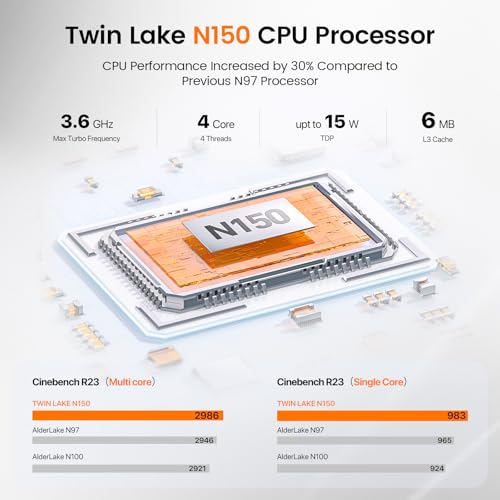 【Upgraded Ultra-Compact Size】- TRYCOO WI-9 mini PC compared to the WI6 mini computer, the volume is only 3/5 and the small computer’s Size only 4.1*3.8*1.5 inch. And the weight is only 1/50 of a desktop computer, making it a space-saving, portable small pc that’s easy to carry. 【Mini PC N150 Processor】- We built our mini computer to feature 1000 MHz UHD Graphics, offering a 30% performance boost over the N100 / N97 and supports Quick Sync and AV1 decoding. The N150 PC features the latest 24EUs GPU, burst speeds up to 3.6GHz, and a TDP of up to 15W, delivering a 45% performance increase over the previous N-series, ensuring unrivaled smoothness and efficiency.